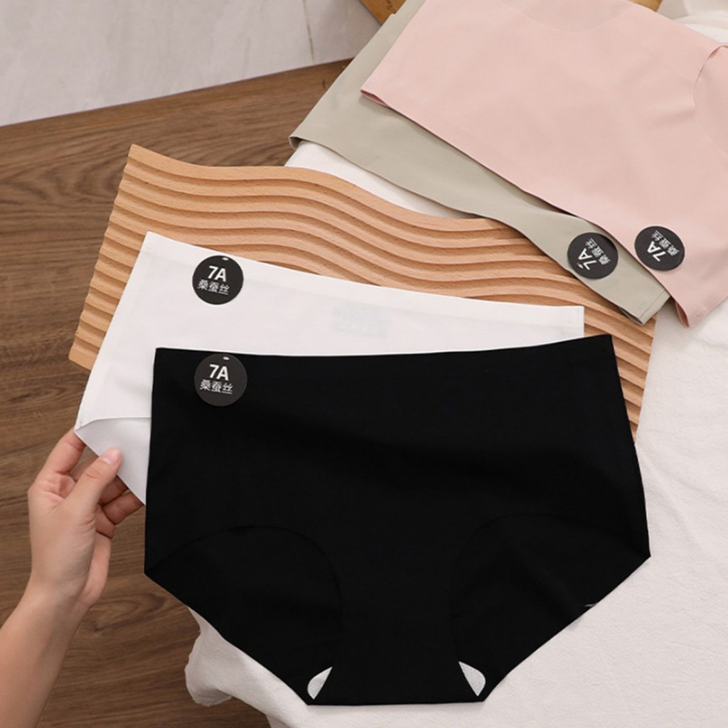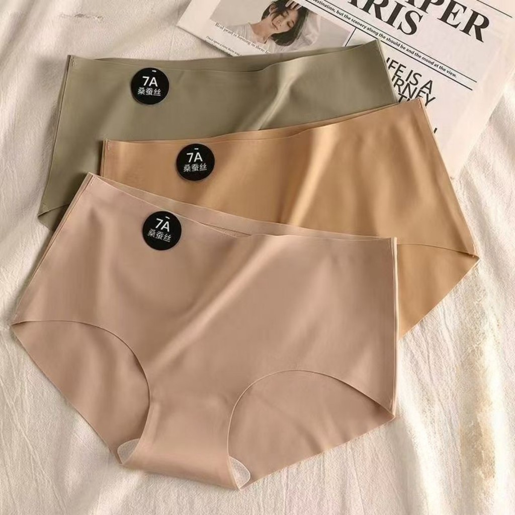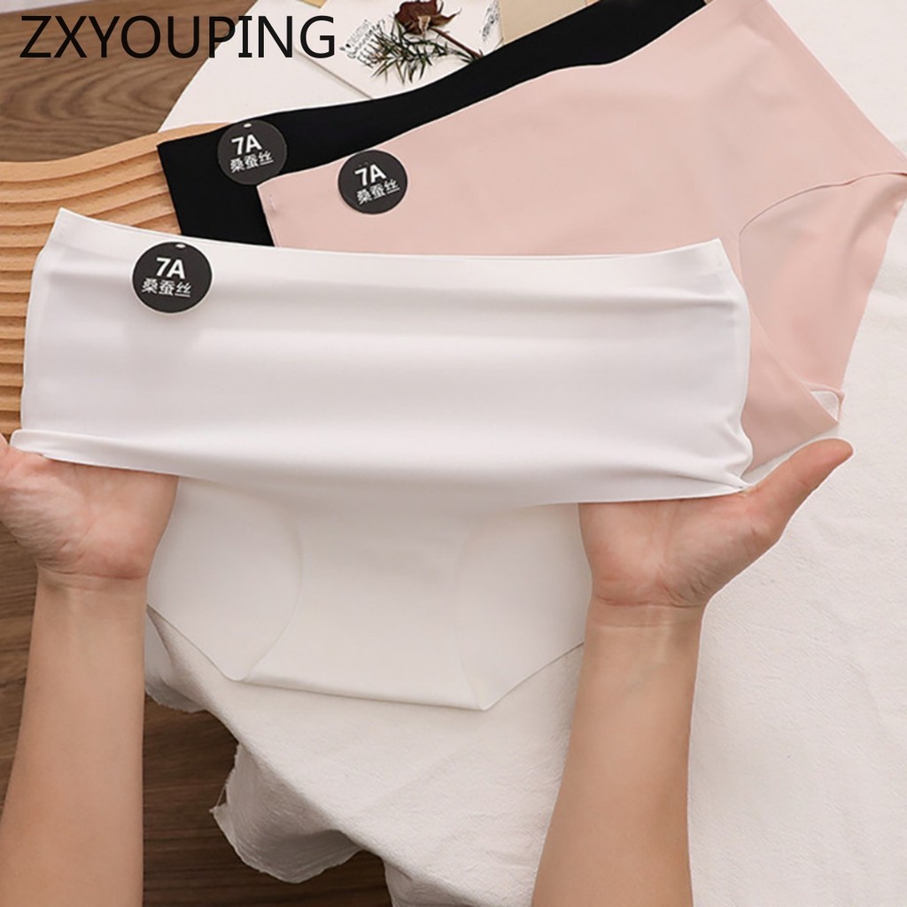 Zxyouping 1/3 ชิ้น 7A Mulberry Silk ผ้าไหมน้ําแข็งกางเกงผู้หญิงชุดชั้นใน Mid-rise Breathable วัยรุ่นหญิง Simple สีทึบกางเกงสามเหลี่ยม