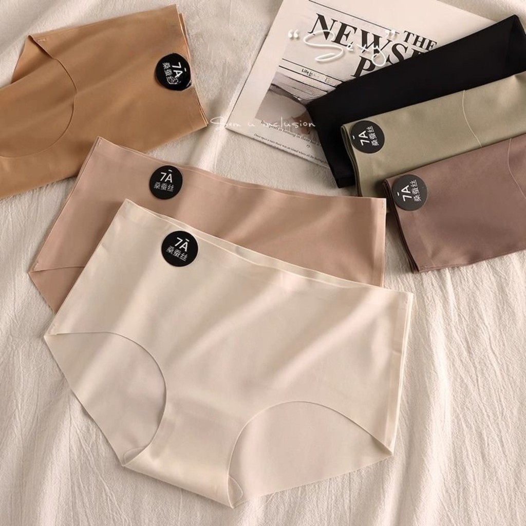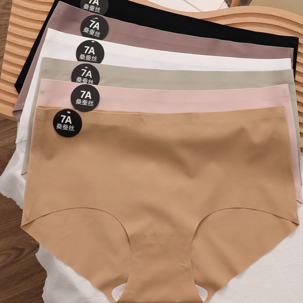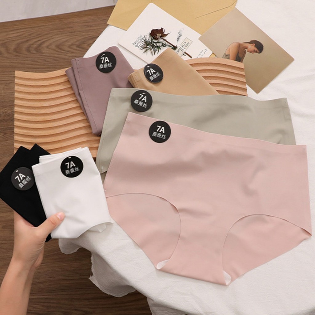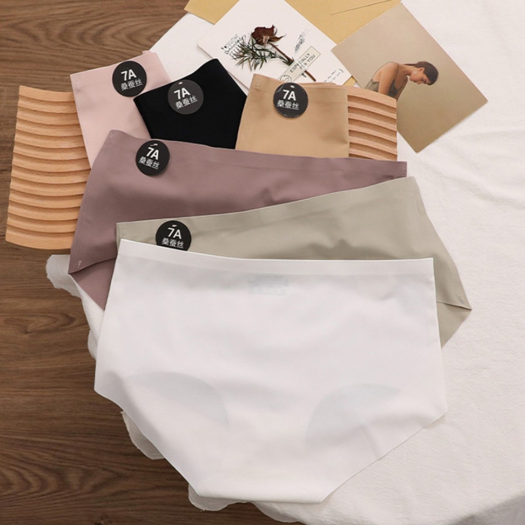 Zxyouping 1/3 ชิ้น 7A Mulberry Silk ผ้าไหมน้ําแข็งกางเกงผู้หญิงชุดชั้นใน Mid-rise Breathable วัยรุ่นหญิง Simple สีทึบกางเกงสามเหลี่ยม