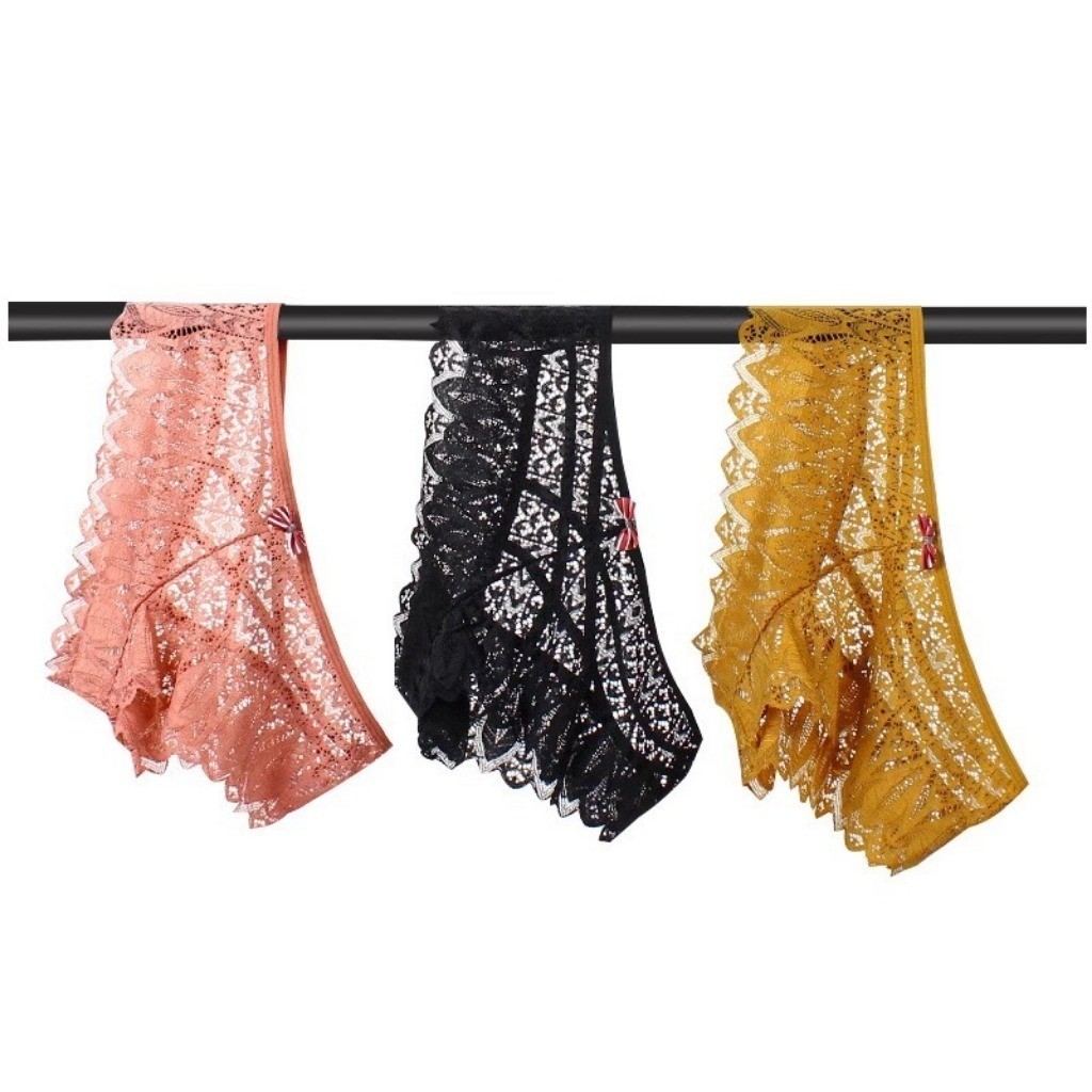 Zxyouping 3 ชิ้น ผู้หญิง กางเกงในลูกไม้ เซ็กซี่ ล่อใจ กางเกงในซีทรู ไร้รอยต่อ บางเฉียบ กางเกงในต้านเชื้อแบคทีเรีย ชุดชั้นใน
