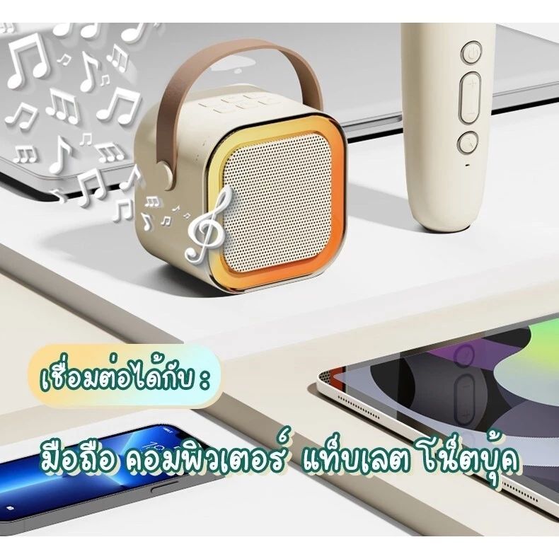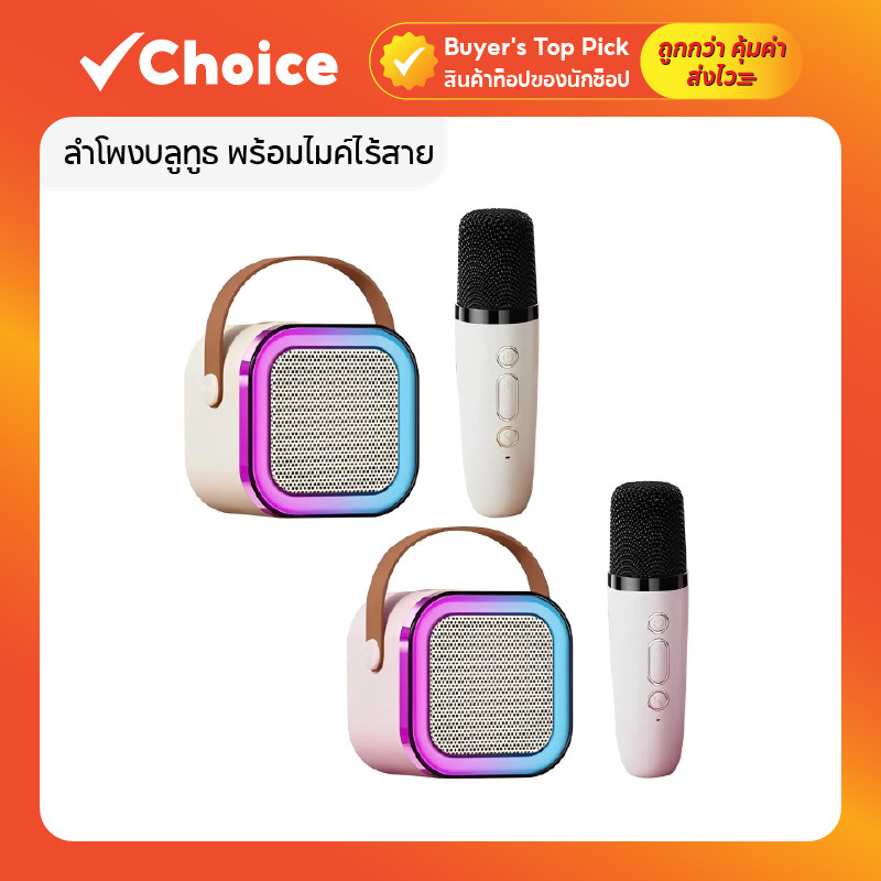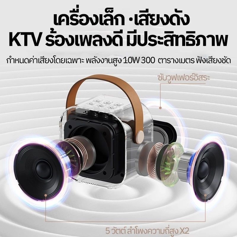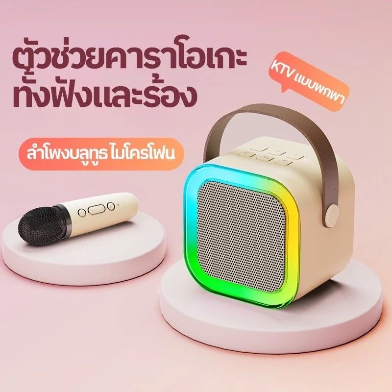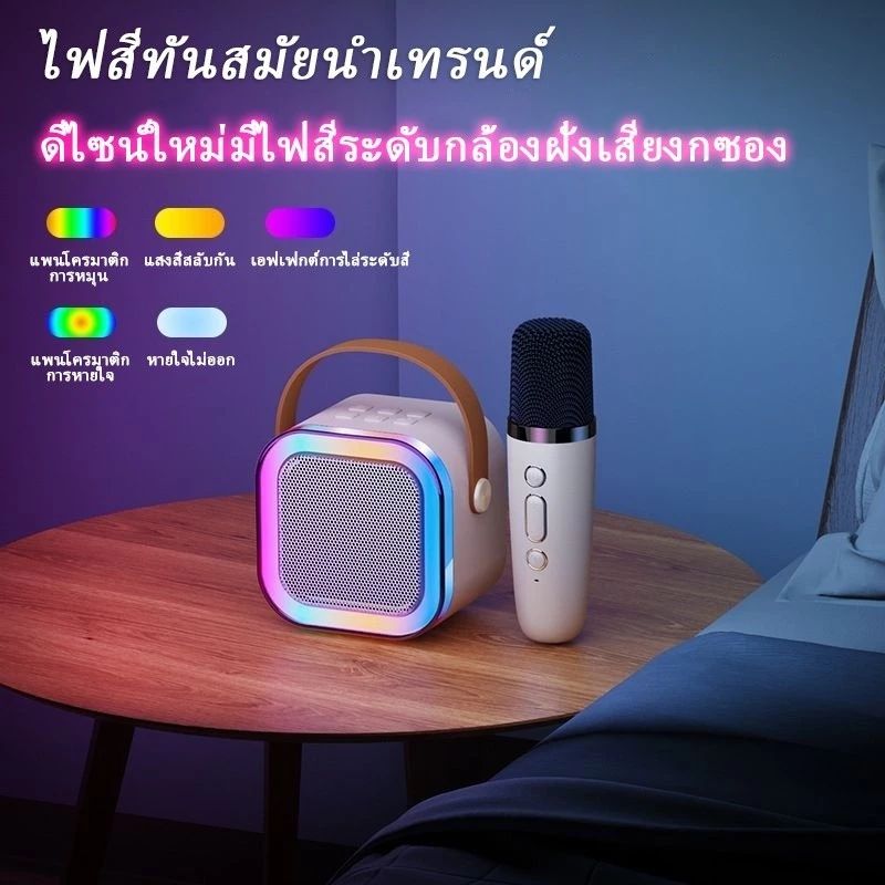 [ซื้อ 2 ชิ้นลดเพิ่ม] ลำโพงบลูทูธ พร้อมไมค์ไร้สาย ไมโครโฟน RGB ไซส์มินิแบบพกพา ลำโพงร้องเพลงคาราโอเกะกลางแจ้ง