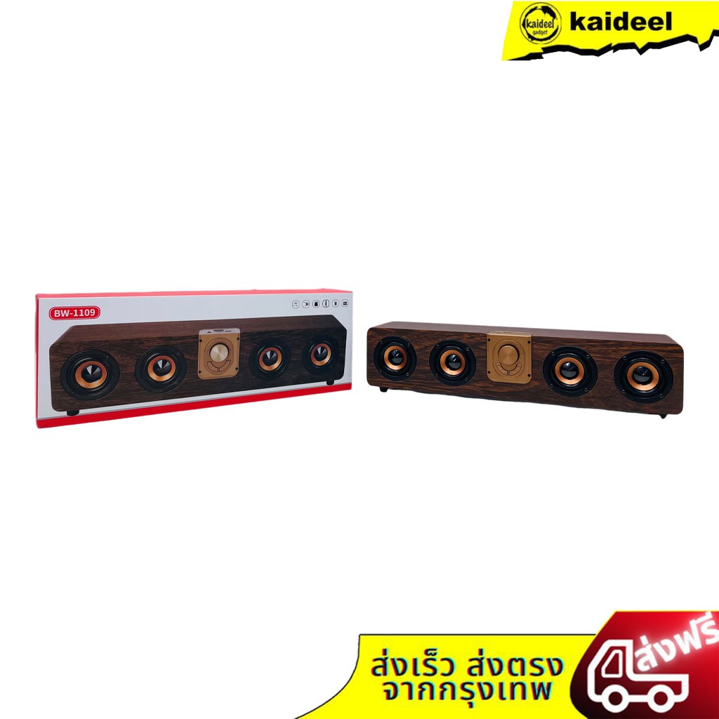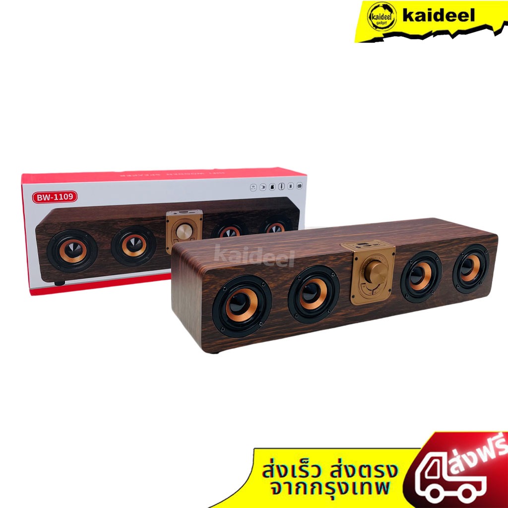 [สินค้าพร้อมส่ง] NEWลำโพงไร้สาย BW-1109 ลายไม้ยาว เสียงทุ้มหนักแน่น ลำโพงลายไม้ 4 ดอก รองรับ ไมโครโฟน เสียงดังฟังชัด
