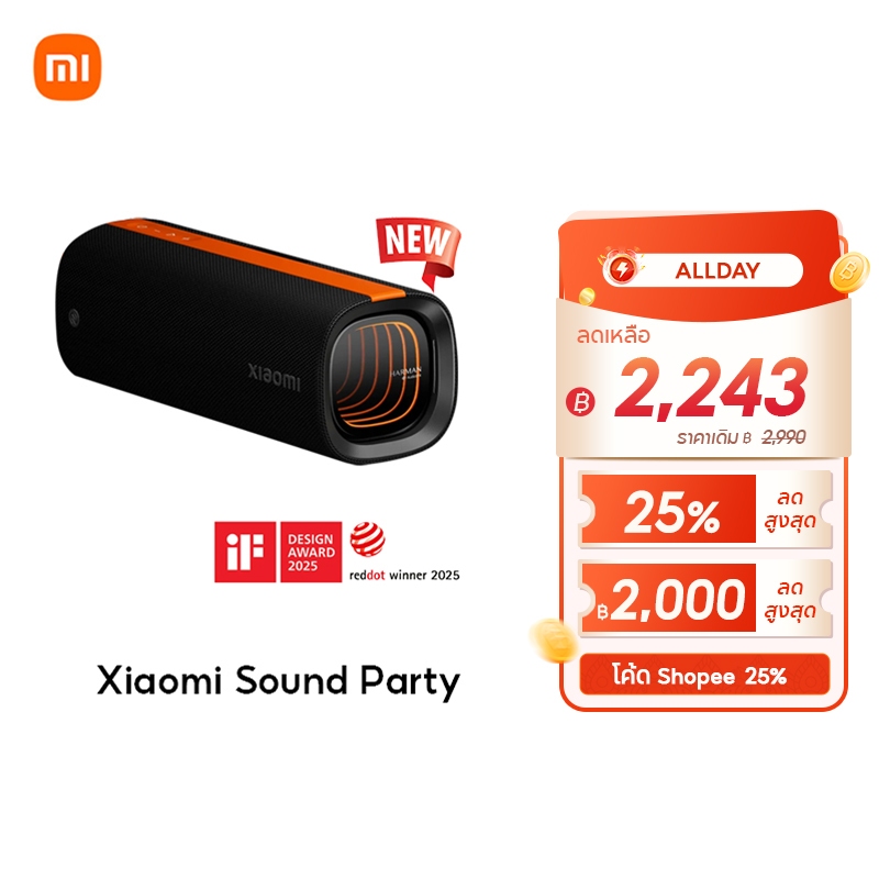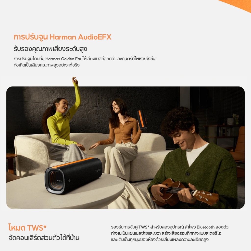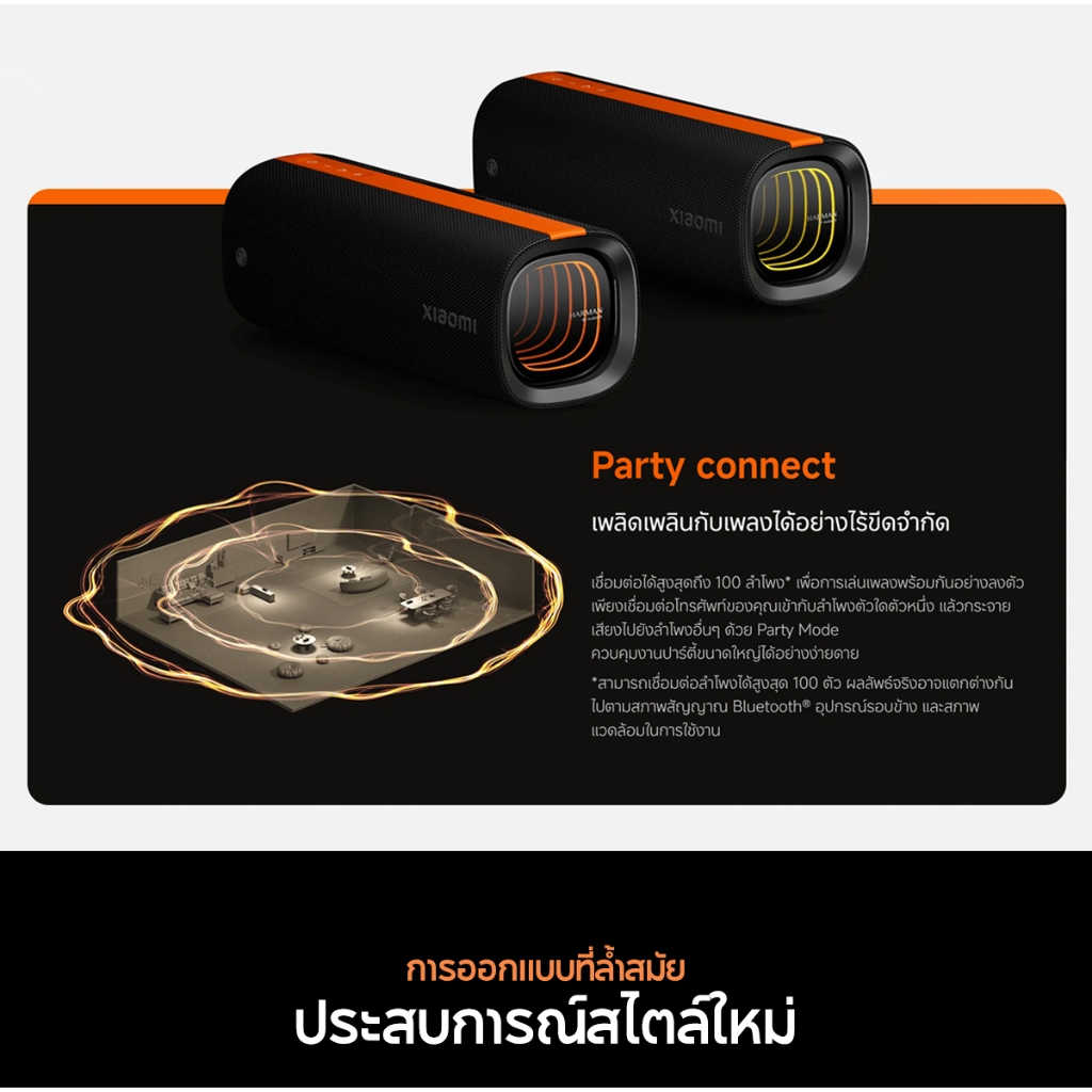 [NEW] Xiaomi Sound Party คุณภาพเสียงทรงพลัง 50W ปรับแต่งเสียงด้วย Harman AudioEFX การเชื่อมต่อ TWS* สองอุปกรณ์