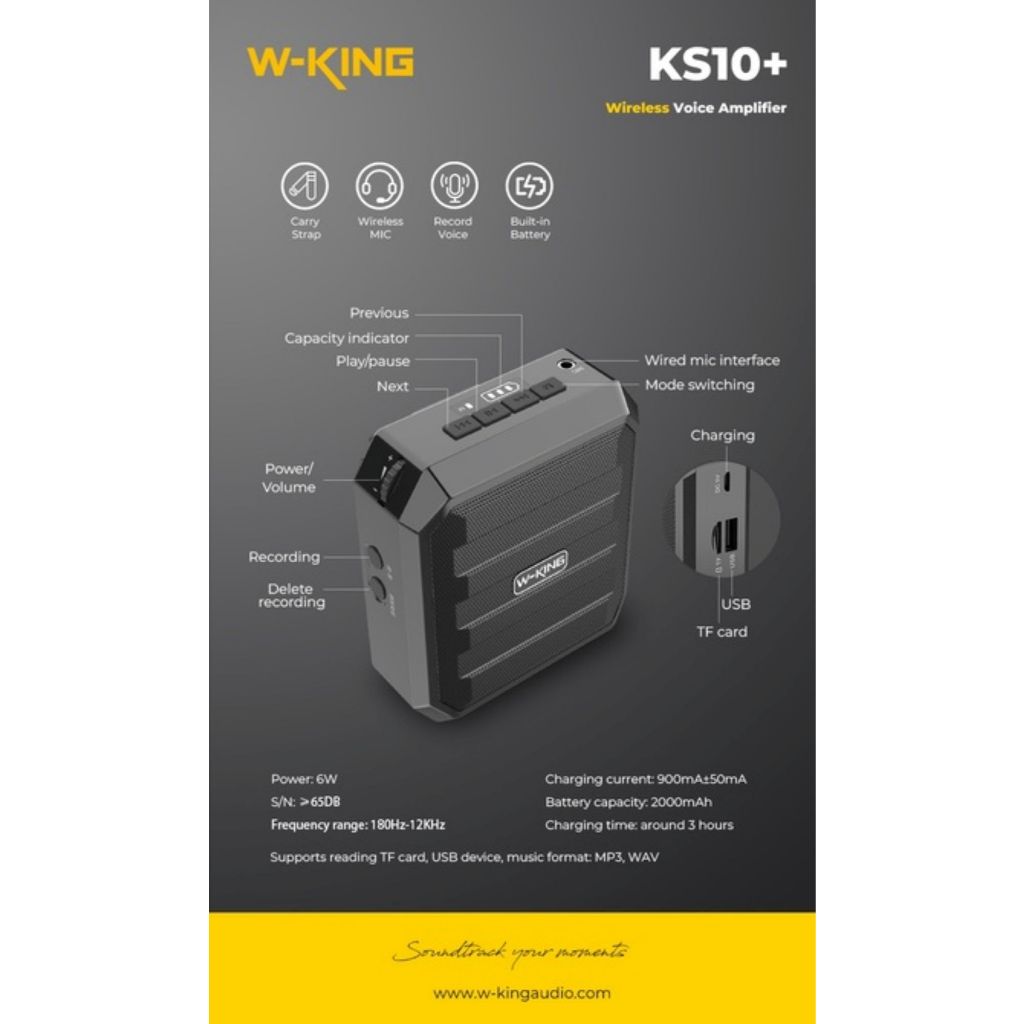 [ประกันศูนย์ไทย 1ปี] W-King KS10+ ลำโพงช่วยสอน ไมค์ไร้สาย ไมค์สอนหนังสือ ไมค์สอนนักเรียน ลำโพงพกพา ลำโพงไกด์