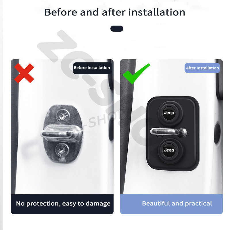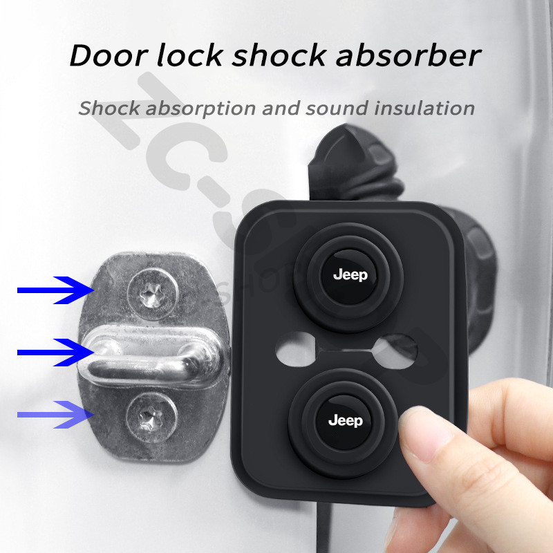 -Jeep แผ่นดูดซับแรงกระแทกประตูรถยน – โคนรถประตูล็อคฝาครอบป้องกันประตูล็อคโช้คอัพเงียบอุปกรณ์เสริมสําหรับ Jeep Grand Cherokee Wrangler Unlimited Chero