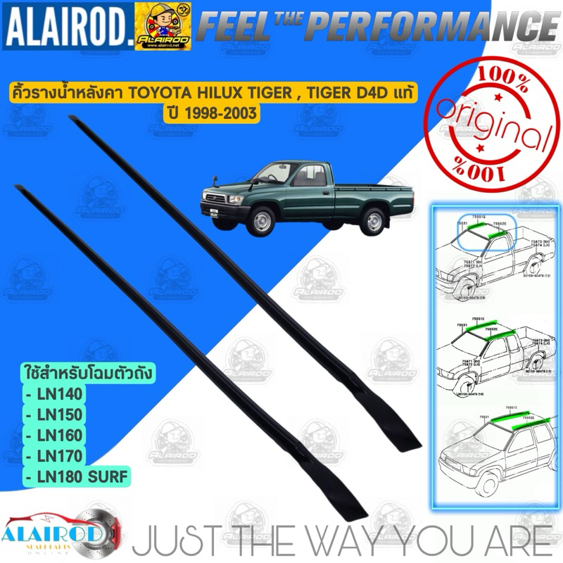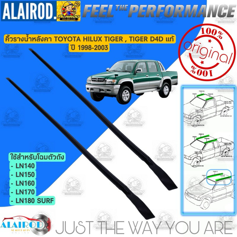 ‼️แท้‼️ คิ้วหลังคา , ยางรางน้ำหลังคา , คิ้วรางน้ำ TOYOTA HILUX TIGER , TIGER D4D ปี 1998-2003 / หัวเดี่ยว แค็บ 4ประตู