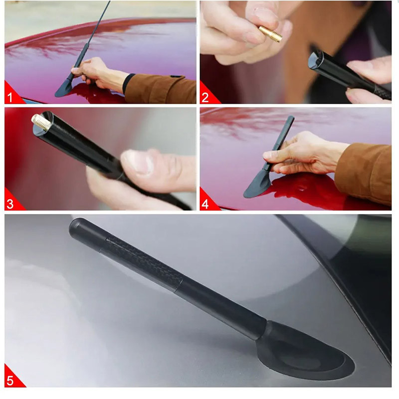 Monqiqi เสาอากาศรถยนต์ 3.5 ซม รถยนต์จัดแต่งทรงผมหลังคาเสาอากาศเพิ่มสัญญาณคาร์บอนไฟเบอร์สกรูโลหะเสาอากาศสั้นเสาตอไม้