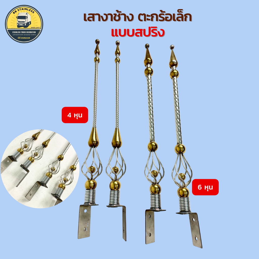 (ราคาต่อคู่)เสาธงสั้น เสาธงงาช้าง ตะกร้อเล็ก แบบสปริง ติดรถบรรทุก ยาว 74 ซม. สแตนเลสแท้ อุปกรณ์แต่งรถบรรทุก รถสิบล้อ
