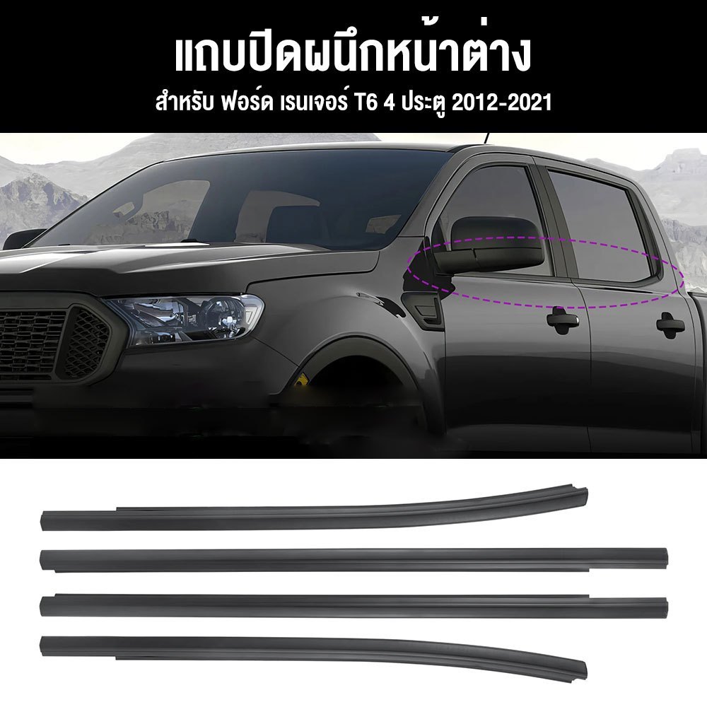 คิ้วรีดน้ำประตู Ford Ranger T6 4ประตู และ ปี2012-2021เรนเจอร์ ฟอร์ด ยางรีดนำ้ขอบกระจก ยางรีดน้ำนอก