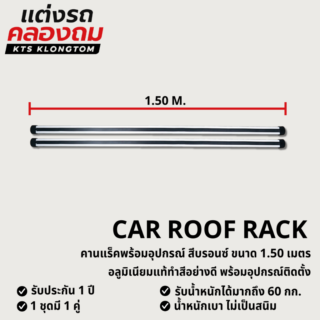 คานแร็ค VETHAYA อลูมิเนียมแท้ สีบรอนซ์ พร้อมอุปกรณ์ติดตั้ง สำหรับแร็คหลังคารถ Car Roof Rack รับประกัน 1 ปี
