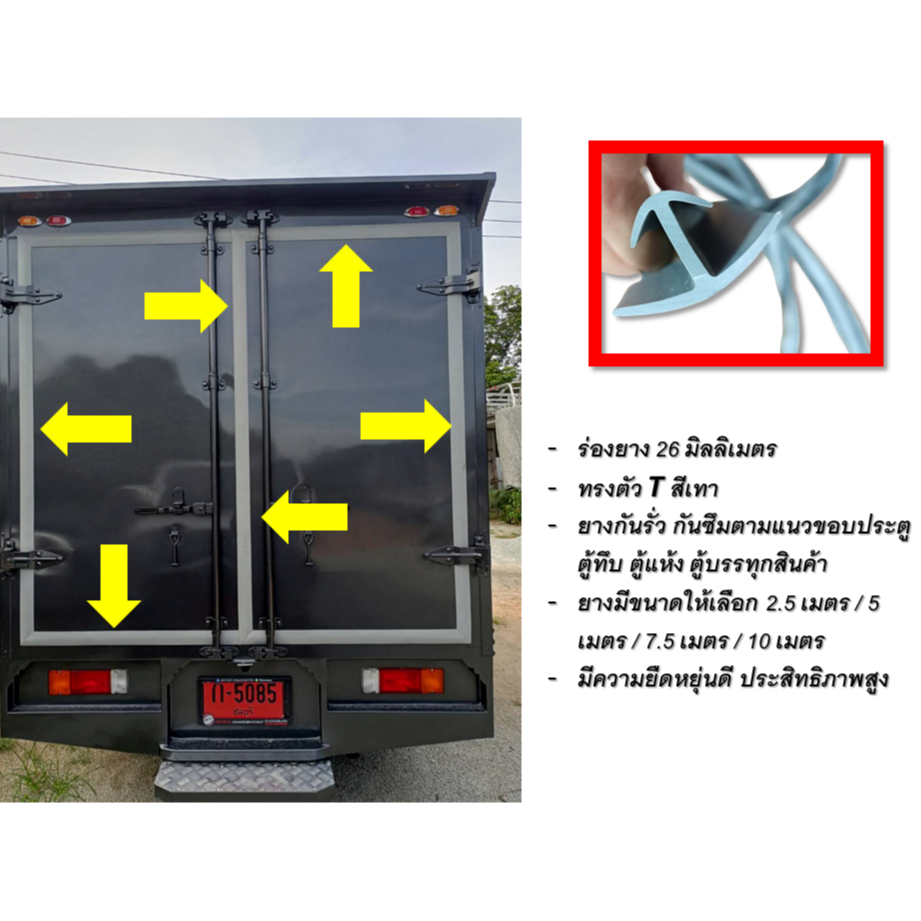 ยางขอบประตูตู้ทึบรถบรรทุก ร่อง 25 มม. ทรงตัว T สีเทา ยางกันน้ำรั่วน้ำซึมตามแนวขอบประตู พร้อมจัดส่ง