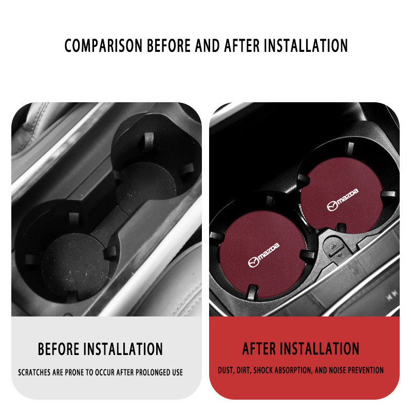 1ชิ้น สำหรับ Mazda แผ่นรองแก้วน้ําในรถยนต์ หนังแผ่นรองแก้วน้ําในรถยนต์ แผ่นรองแก้วน้ำในรถ กันลื่น แผ่นรองแก้วเครื่องดื่ม Mazda 2 3 BP CX5 CX30 CX3 CX8 Mazda2 6 5 CX9 BT50 RX7