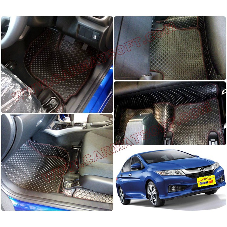 พรมปูพื้นรถยนต์ HONDA CITY 2014-2019 ลายกระดุมยางEVA 10 ชิ้น เต็มคัน (พื้นเรียบ+ตีนตุ๊กแก)