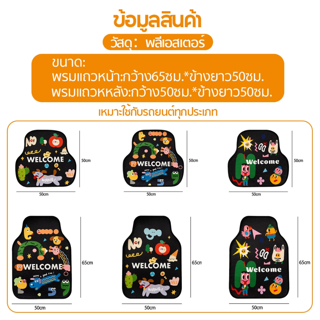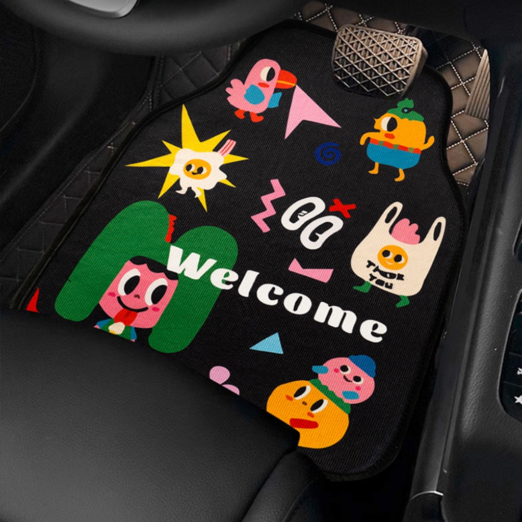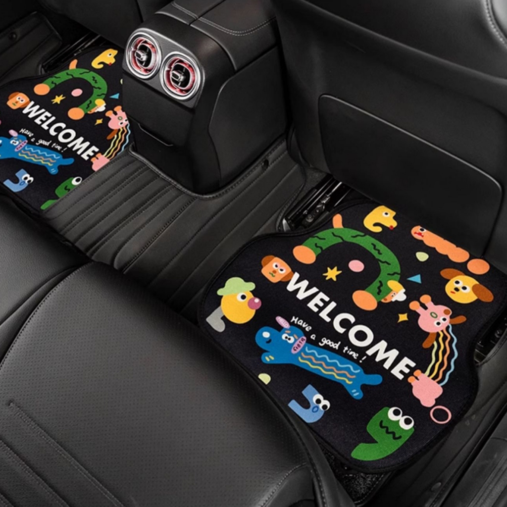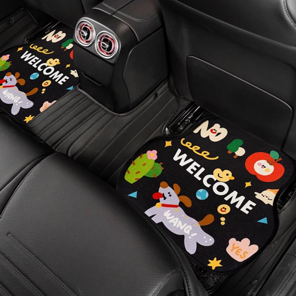พรมปูพื้นรถยนต์ลายการ์ตูน พรมปูพื้น 4 ชิ้น ทนทานต่อสิ่งสกปรก ทำความสะอาดง่าย มีลายให้เลือกหลากหลาย