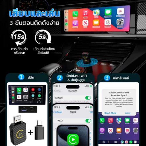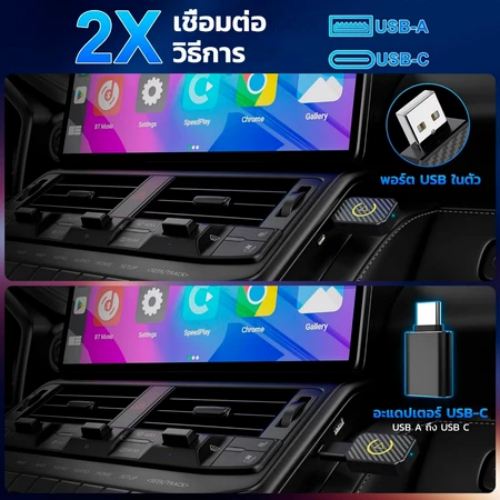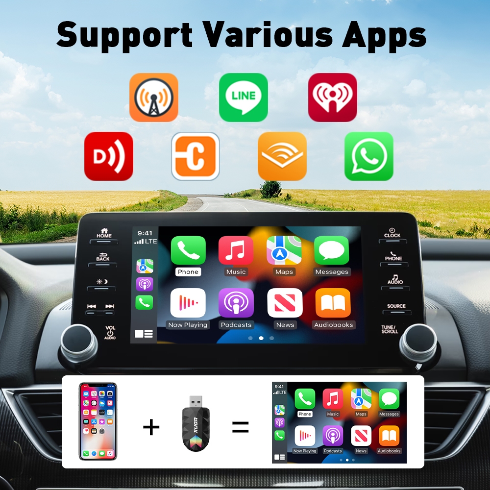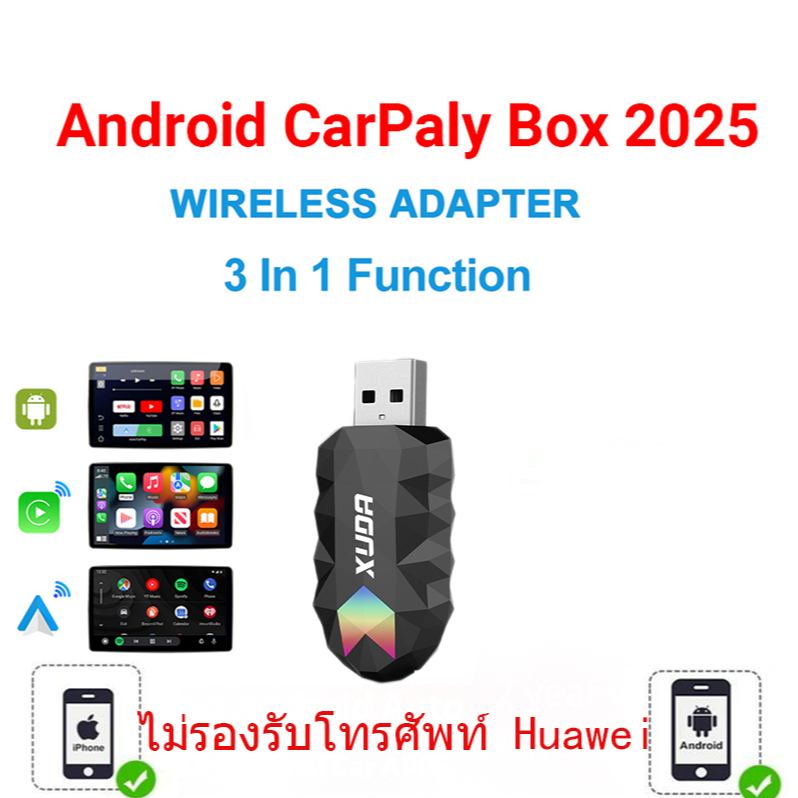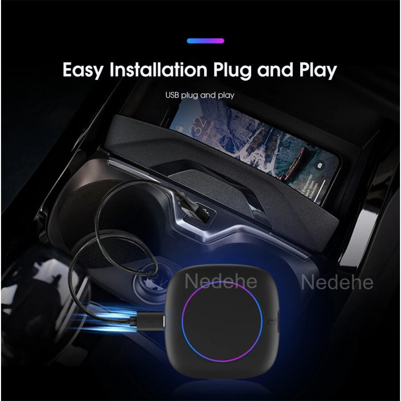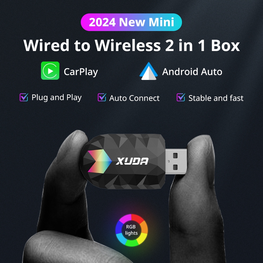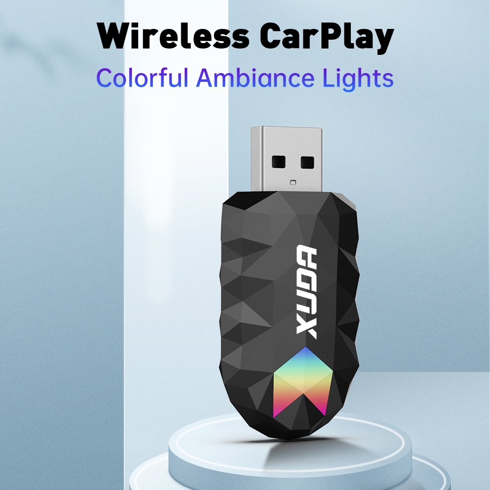 XUDA Wireless CarPlay Auto Adapter ดองเกิล ปลั๊ก และเล่น Plug and Play อะแดปเตอร์สมาร์ทมินิกล่อง apple carplay ไร้สายUSB Dongle Fast Connect RGB ที่มีสีสัน