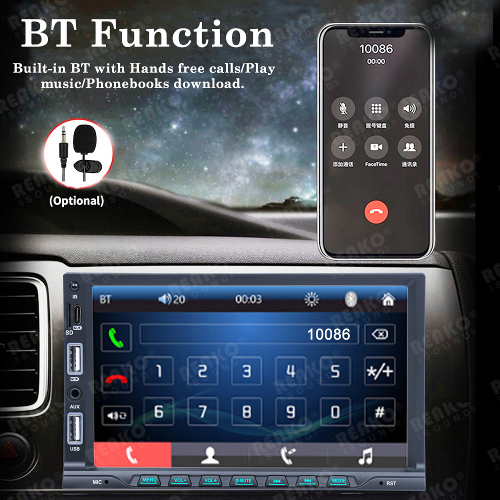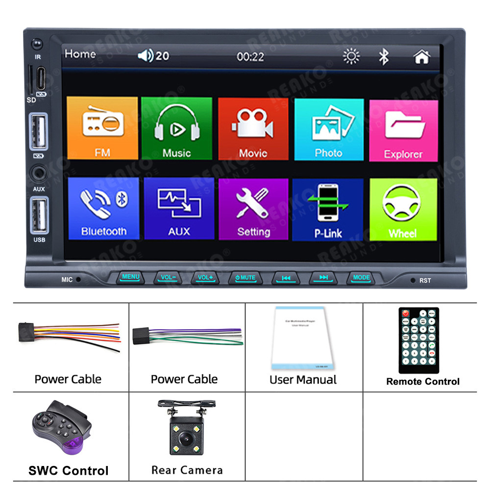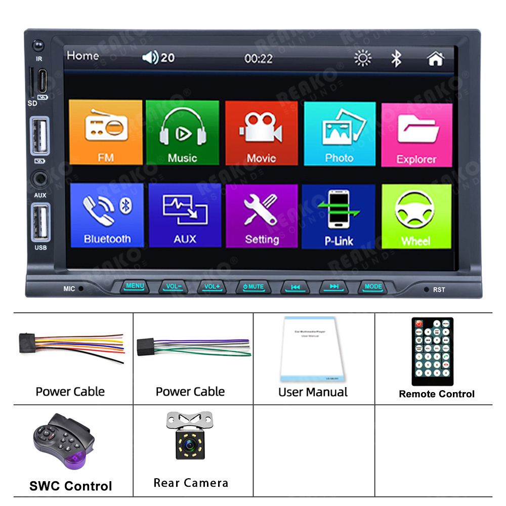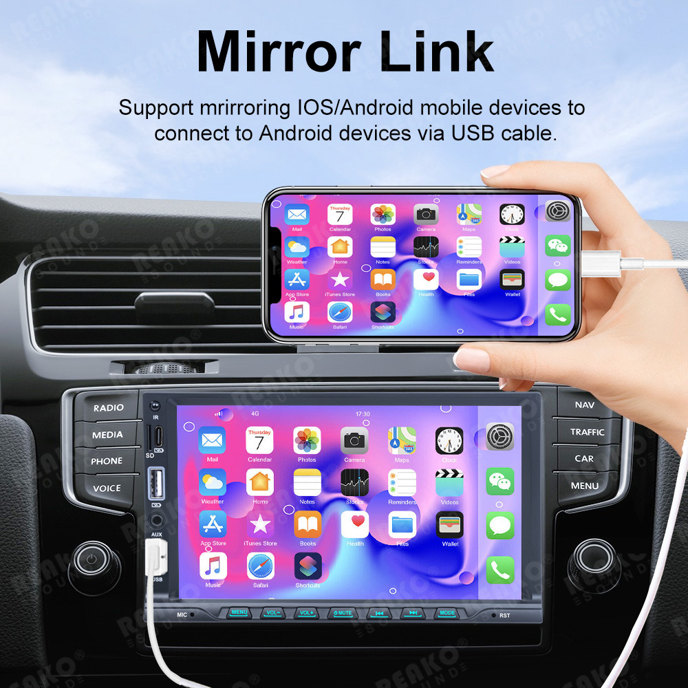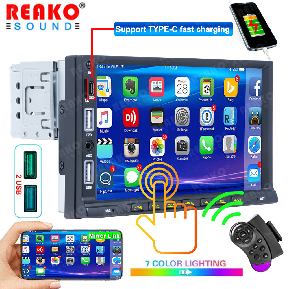 REAKOAUTO 1Din รถวิทยุ 7 “HD Autoradio มัลติมีเดีย MP5 Player หน้าจอสัมผัสกระจก Link รถสเตอริโอบลูทูธ 2USB FM Type-C