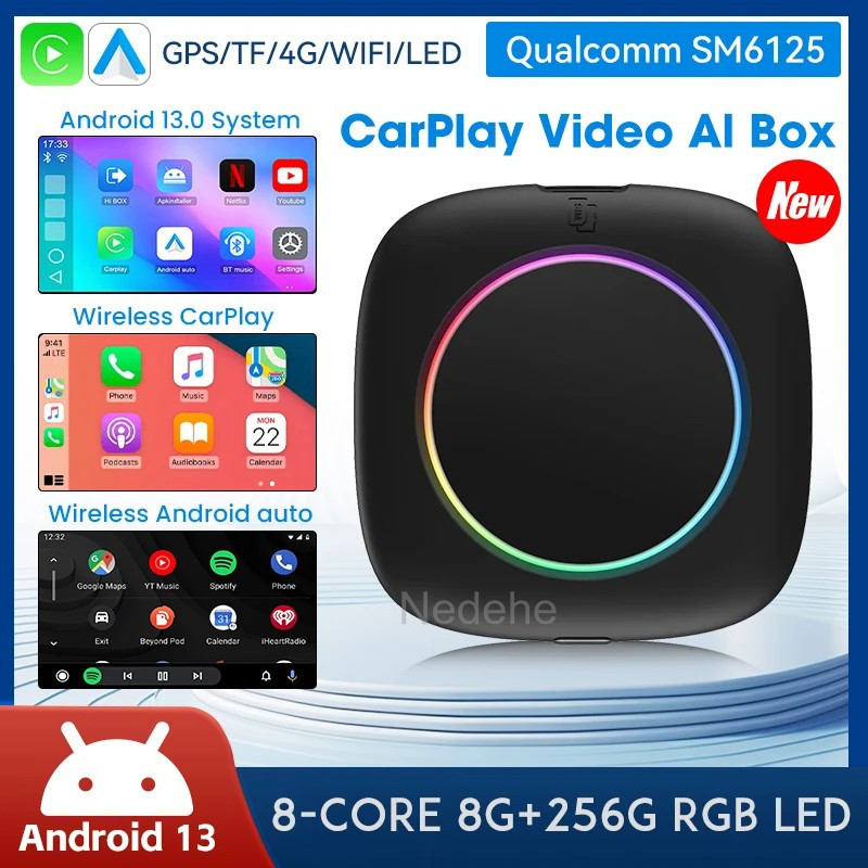 Qualcomm 6125 Android 13 CarPlay AI กล่องสําหรับ BMW/ DEEPAL/ Volvo/ MG ไร้สาย CarPlay 4G WIFI GPS รองรับสําหรับ YouTube Netflix