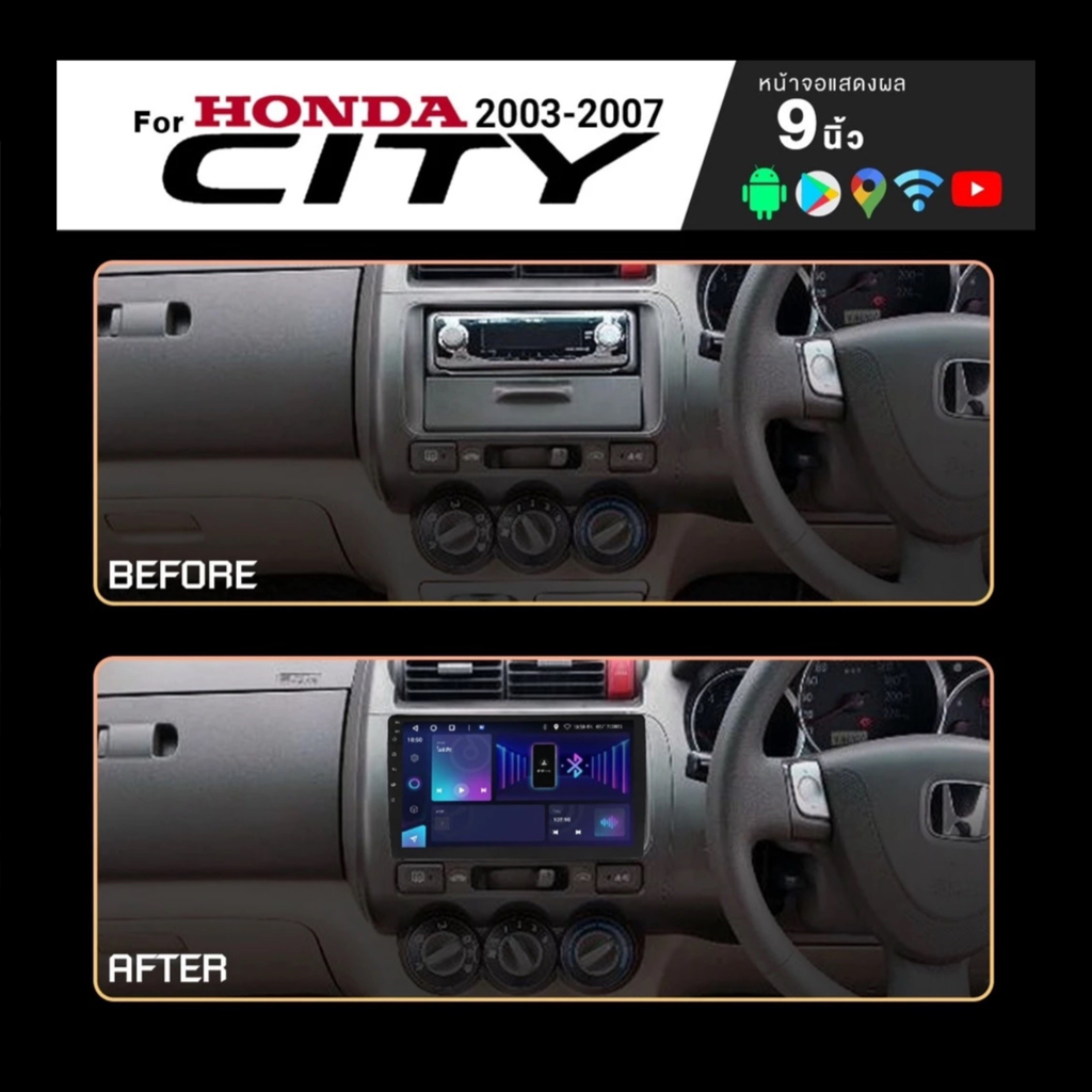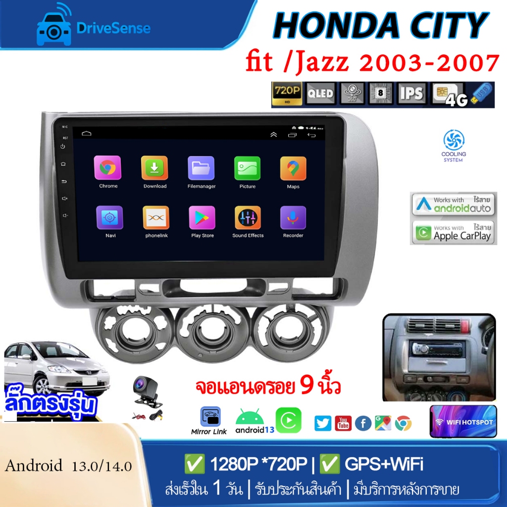 จอแอนดรอย 9 นิ้ว ตรงรุ่น HONDA JAZZ fit/CITY 03-07 2Din Android 14.0 WIFI FM USB Carplay และ 4G จอips จอแอนดรอยตรงรุ่