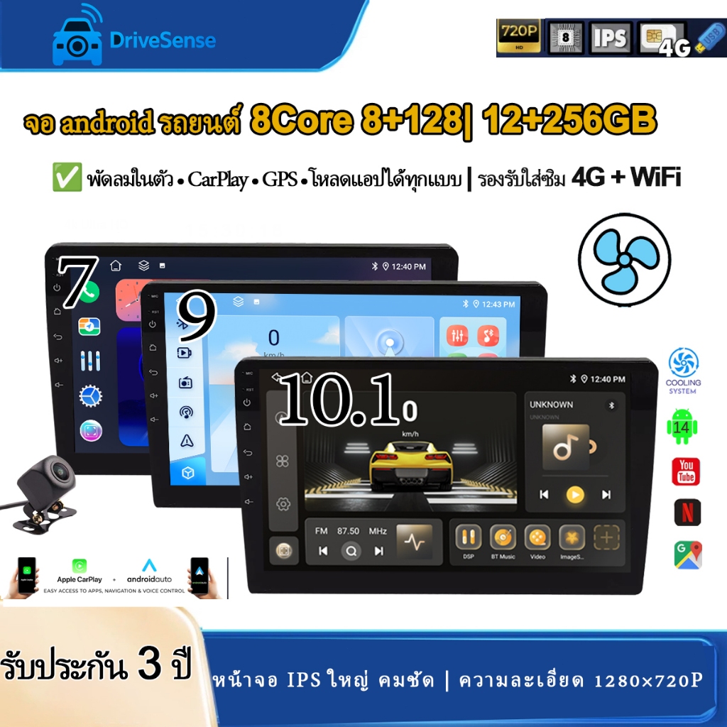 จอ android ติดรถยนต์ 8Core 8G+128G 2din จอ android 14.0 auto WiFi GPS YouTube CarPlay USB EQ 4G/SIM 7/9/10นิ้ว