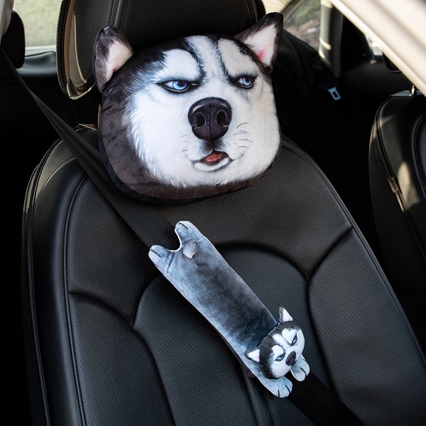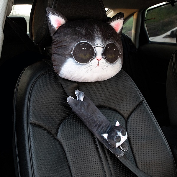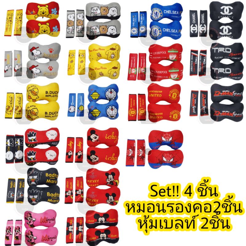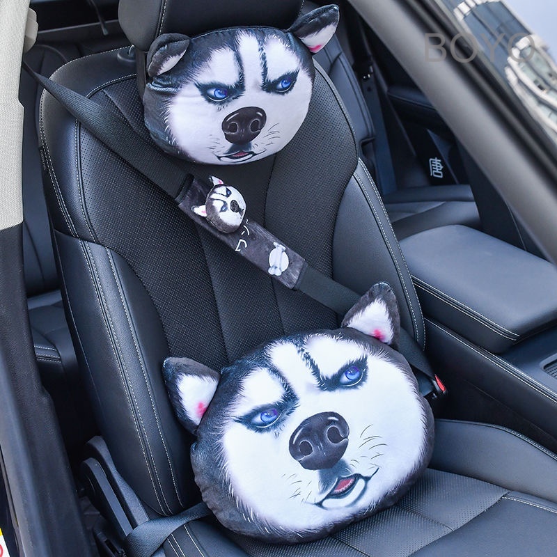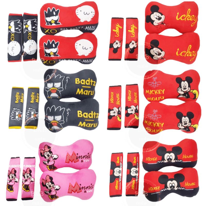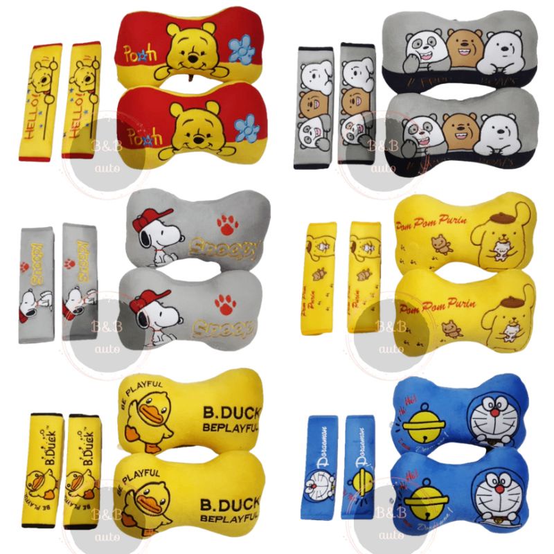 BO หมอนรองคอในรถ หมอนรองคอรถยนต์ น่ารักๆ พนักพิงศีรษะรถ ที่หุ้มเข็มขัดนิรภัย ลานการ์ตูน3D เนื้อผ้าใส่สบาย