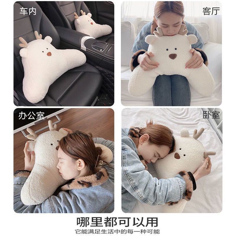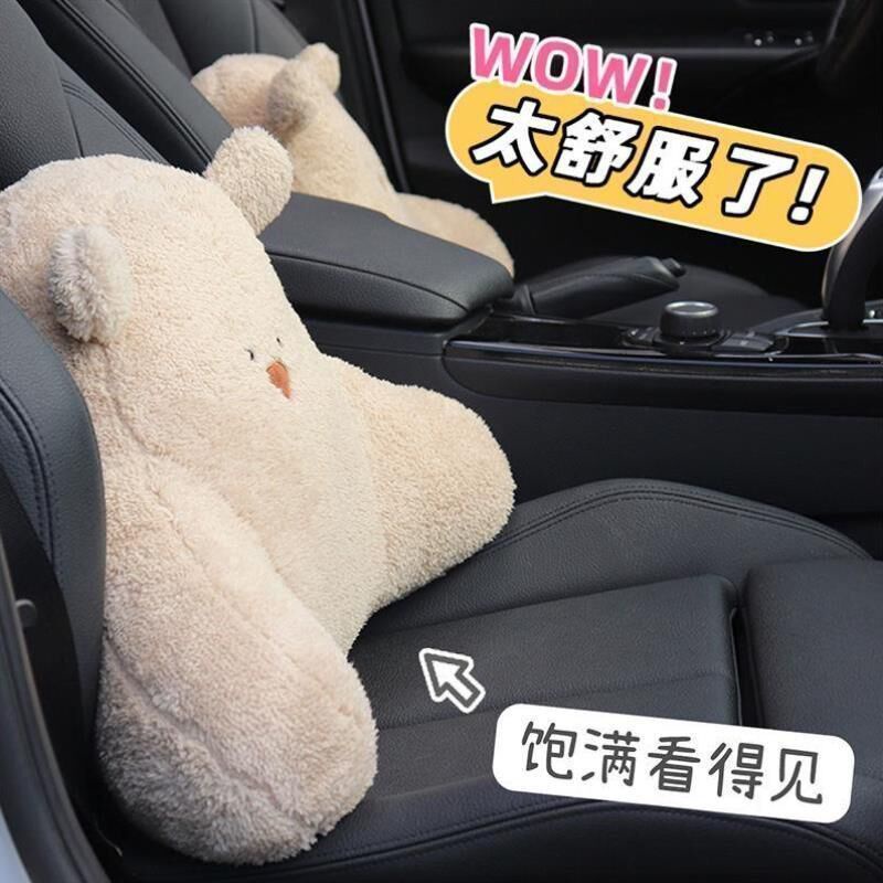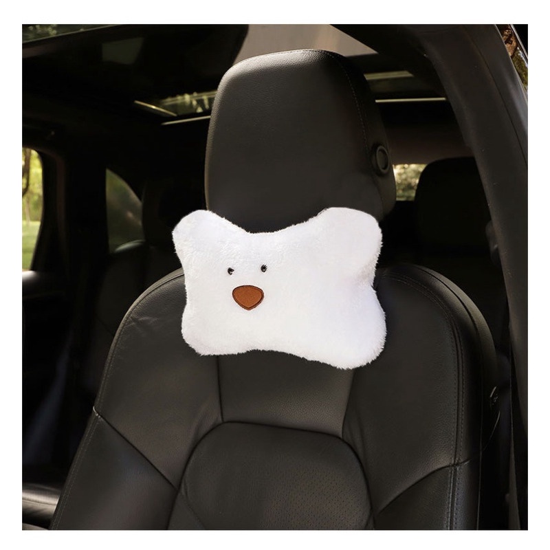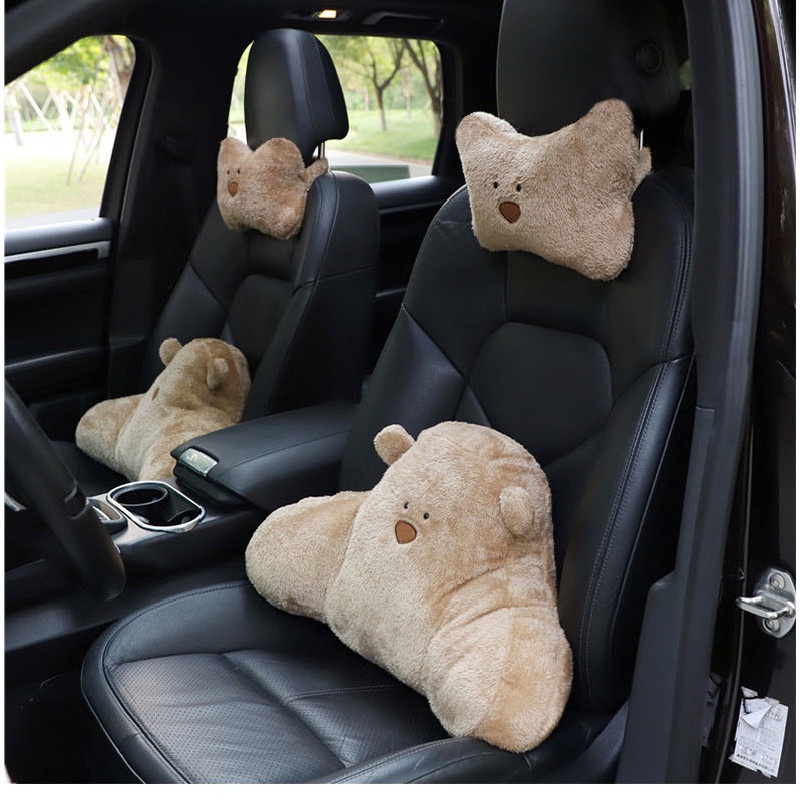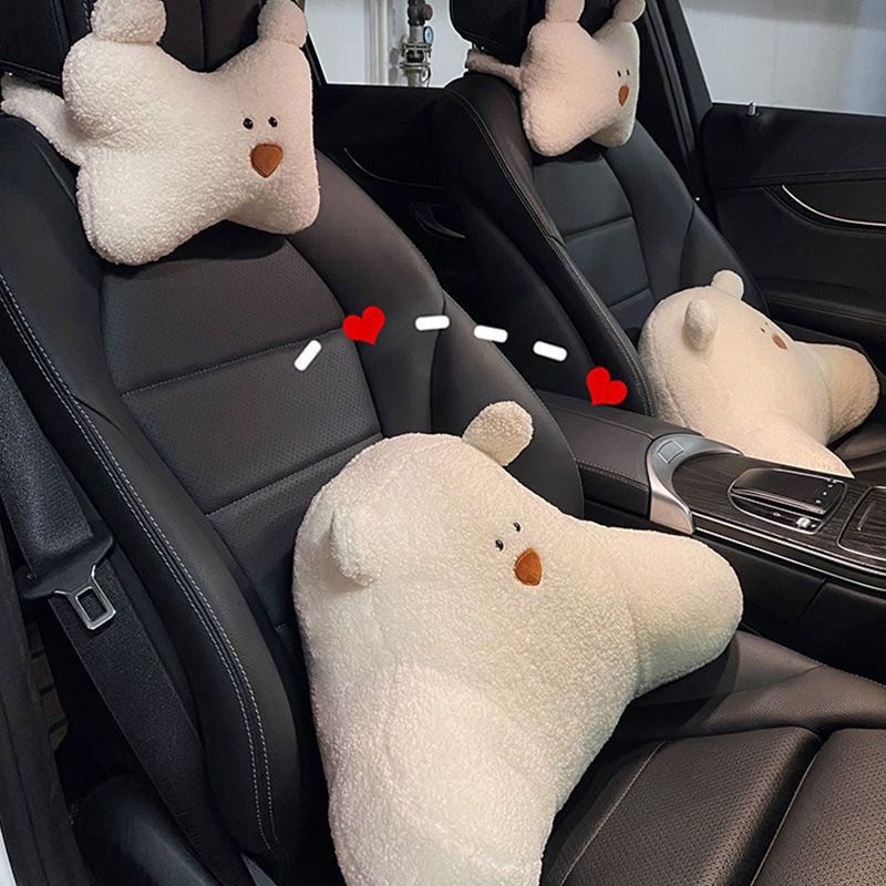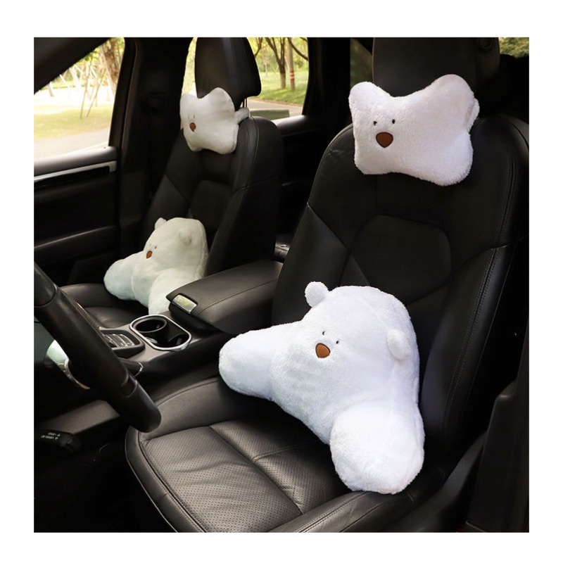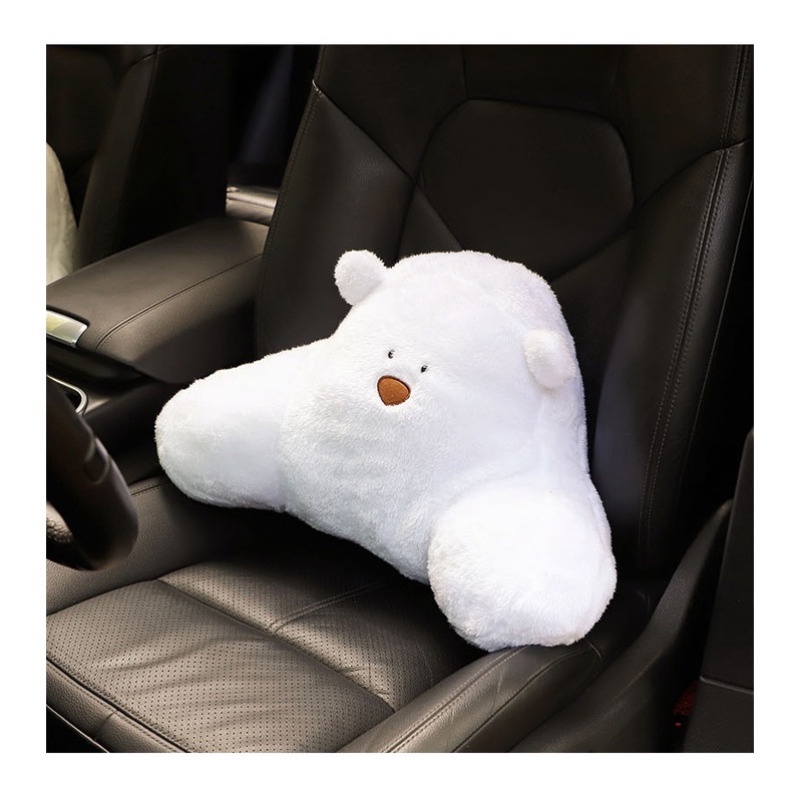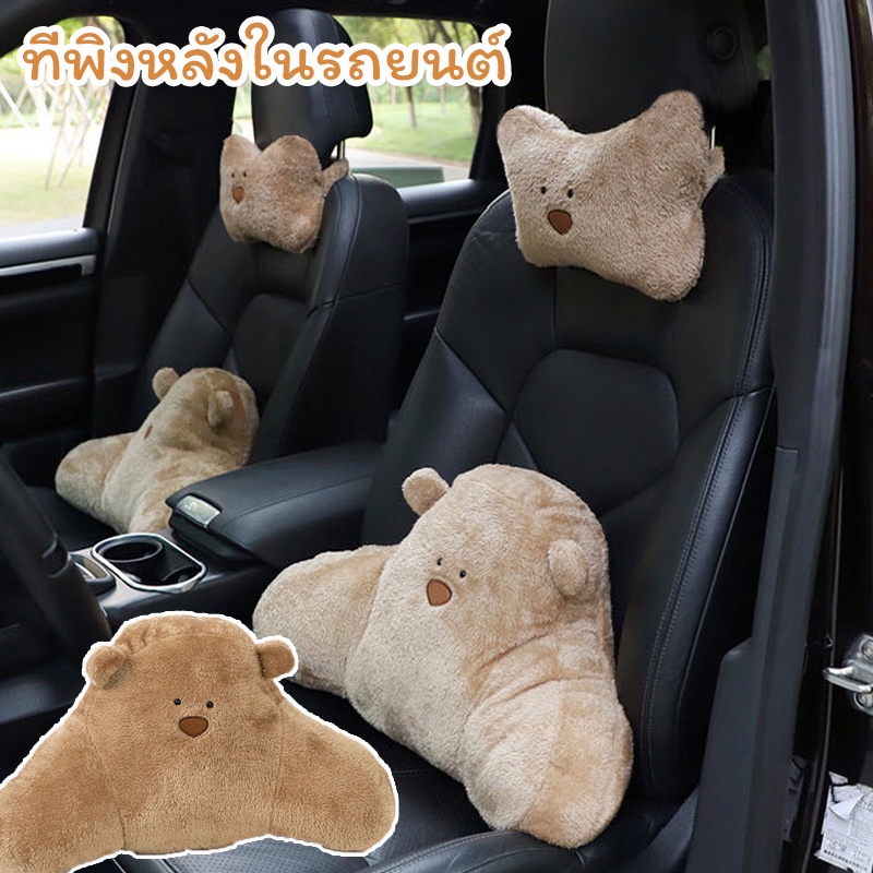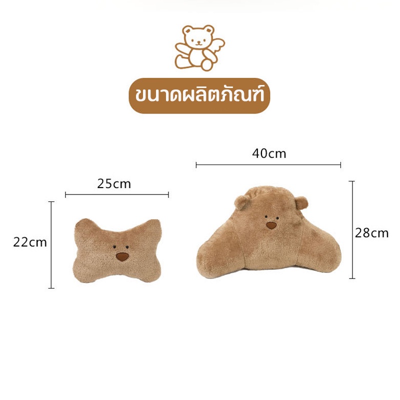 พร้อมส่ง✅หมอนรองคอในรถ ที่พิงหลังในรถยนต์ หมอนรองคอ หมอนรองเอว ลายน้องหมี ขาว น้ำตาล น่ารักมาก