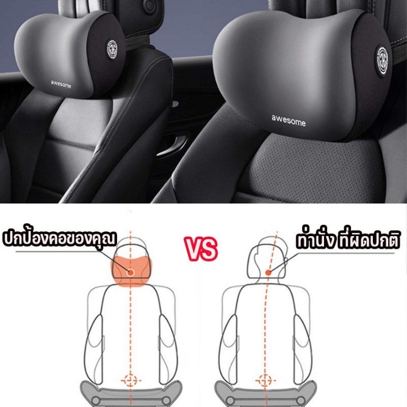 【ของแท้ 100%】หมอนรองคอ รองไหล่ ที่รองพิง พนักพิงศีรษะ เมมโมรี่โฟม หนังนิ่ม ที่รองพิงหลังสำหรับรถยนต์