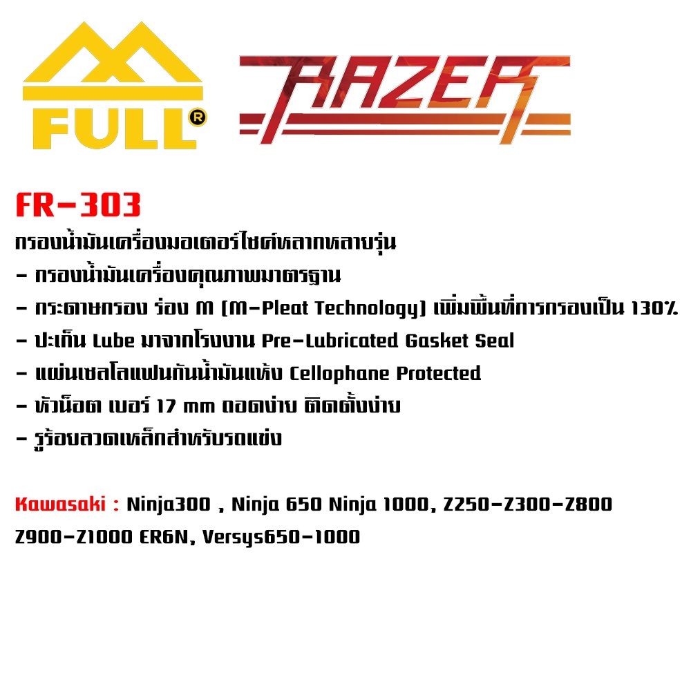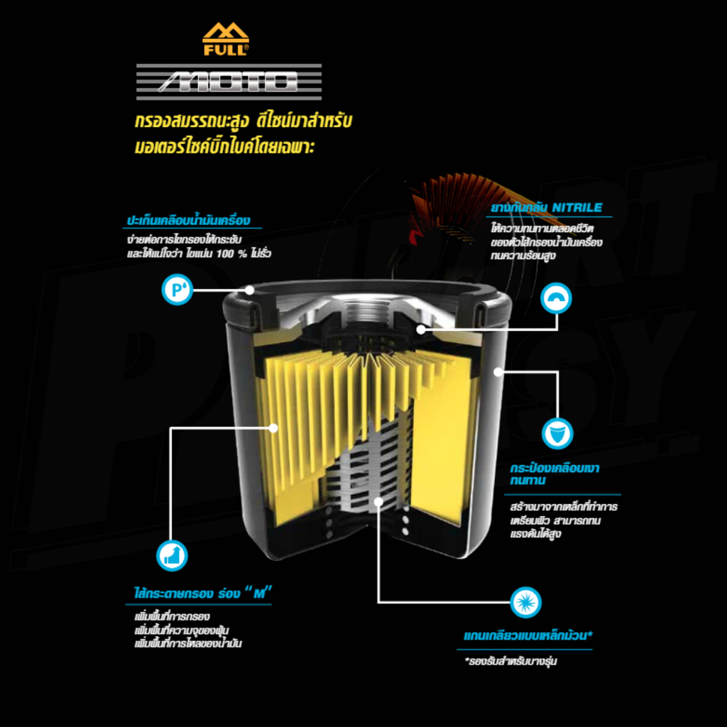 กรองน้ำมันเครื่อง FULL MOTO สำหรับมอเตอร์ไซค์ HONDA YAMAHA KAWASAKI TRIUMPH BENELLI Vespa Xmax Forza Adv Bigbike