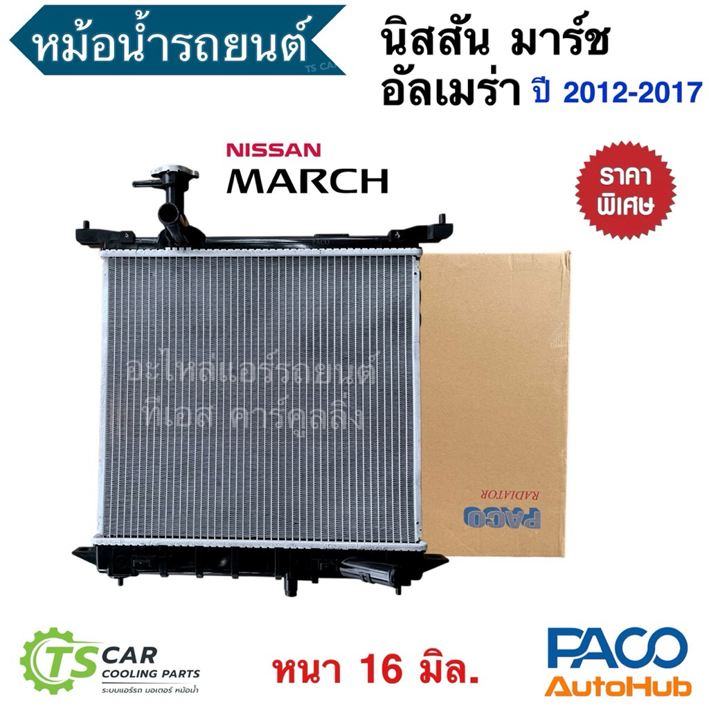 หม้อน้ำ มาร์ช อัลเมร่า Almera March ปี2010-18 ออยแยก (CoolGear / PACO) นิสสัน Nissan March Denso เดนโซ่ หม้อน้ำรถ 0230