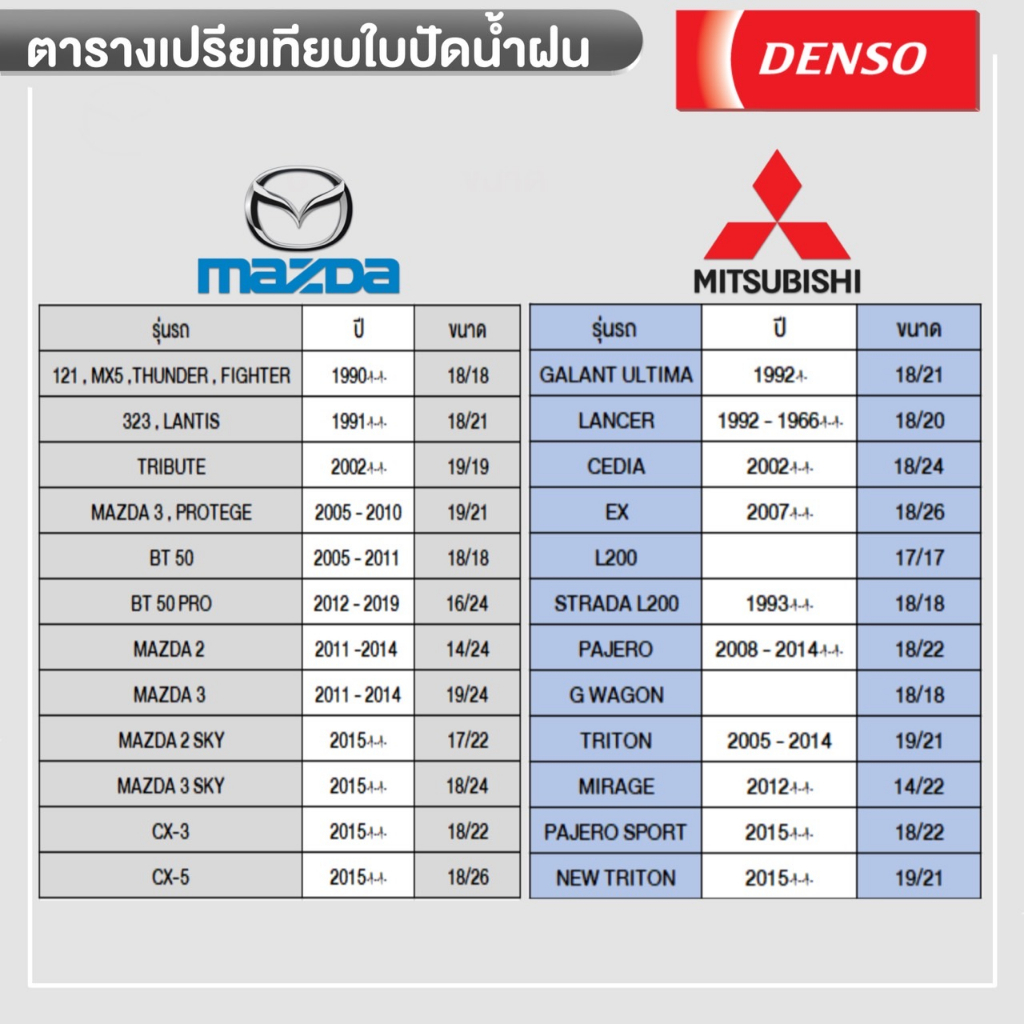 ใบปัดน้ำฝนรถยนต์ DENSO ขนาด 12-26 นิ้ว รุ่น DCS WIPER BLADE (คู่+เดี่ยว) แท้ 100%