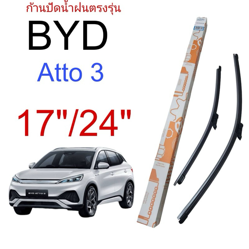 ใบปัดน้ำฝนตรงรุ่น BYD : Atto3 ขนาด 17″/24″ 1ชุด=ได้2ชื้น ช้าย-ขวา จ้า รถยนต์