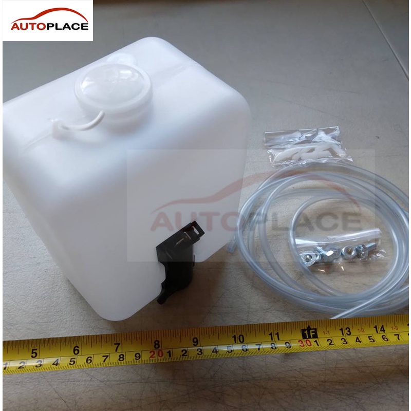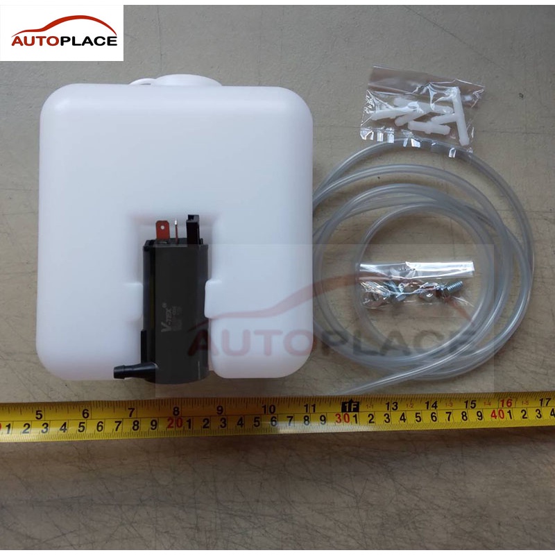 กระป๋องฉีดน้ำรถยนต์ กระป๋องฉีดน้ำฝน ถังพักน้ำฉีดกระจก ทั่วไป ใส่ได้ทุกรุ่น พร้อมมอเตอร์ 12 โวลท์ พร้อมสายยาง ข้อต่อ