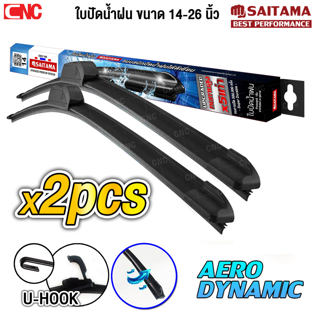 SAITAMA ใบปัดน้ำฝน ก้านโค้ง ไร้เสียง ยางธรรมชาติ แท้ โรงงานขายส่ง ใช้งานดีมาก ขนาด 14-26 นิ้ว