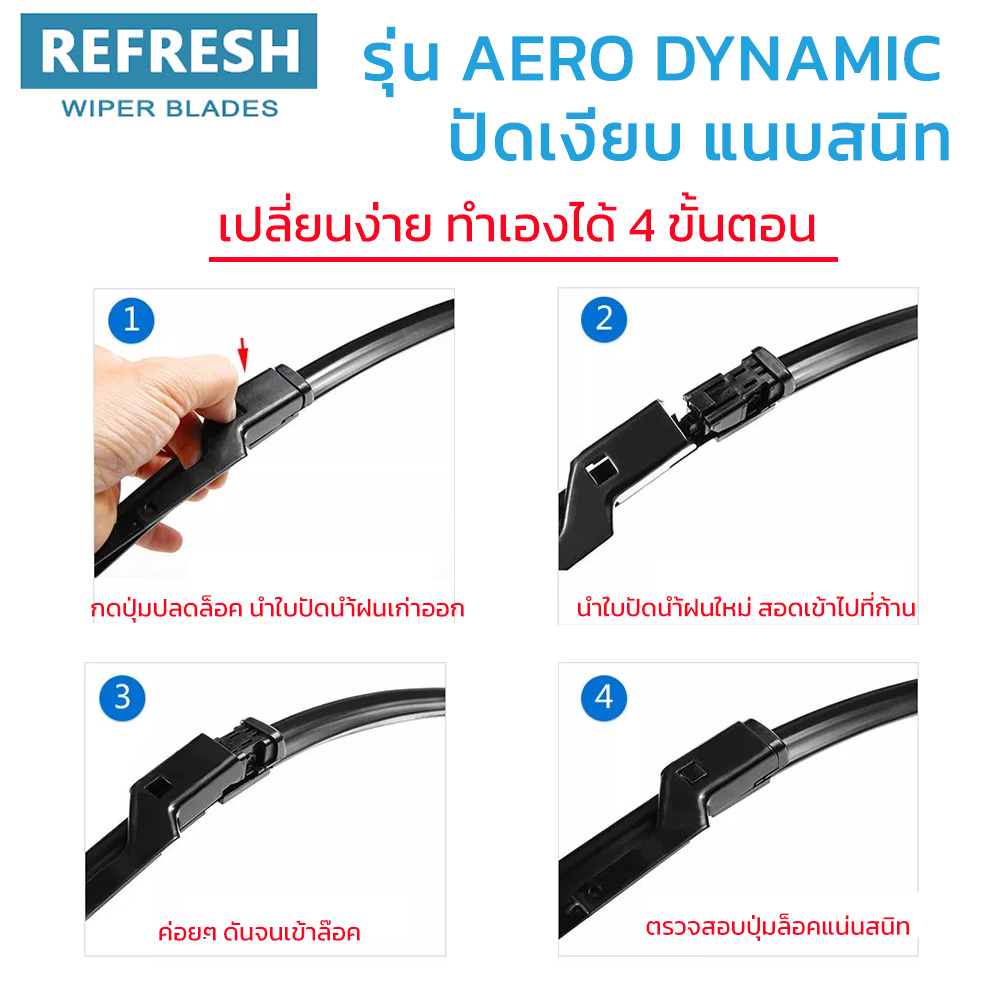 REFRESH ใบปัดน้ำฝน ก้านแบบ EXACT FIT สำหรับ MG EP Plus ปี 2020-2024 ขนาด 24″+18″ ( 1 คู่ )