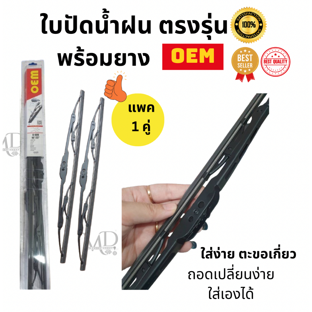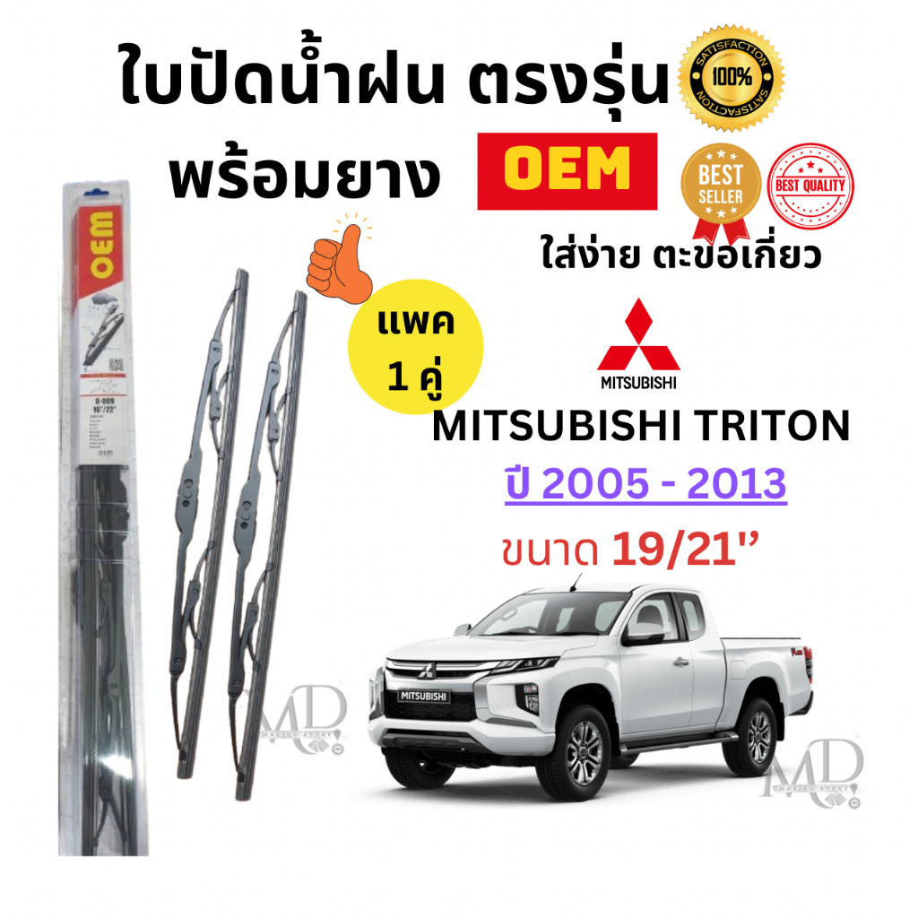 ก้านปัดน้ำฝนใบปัดน้ำฝนพร้อมยาง ตรงรุ่น (แพค1คู่) MITSUBISHI TRITON ปี 2005-2013 ยี่ห้อ OEM ก้านโครงเหล็ก ใส่ง่าย ทนทาน