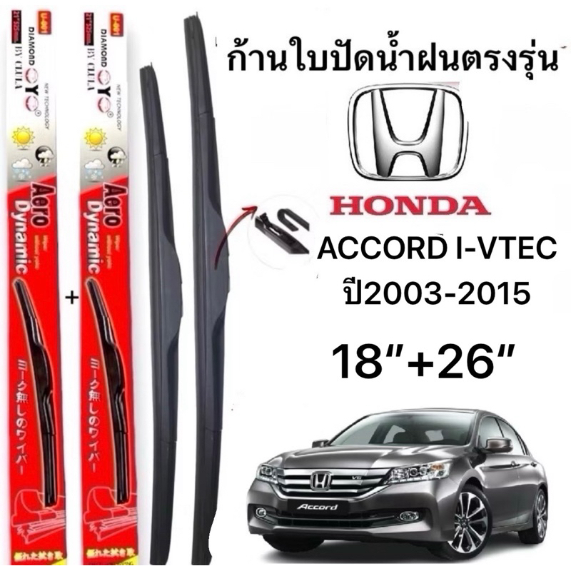 ก้านปัดน้ำฝนตรงรุ่น(1คู่ ก้านพร้อมยางหนา) HONDA ACCORD I-VTEC ปี 2003-2015 ใส่ได้ชัวร์100%