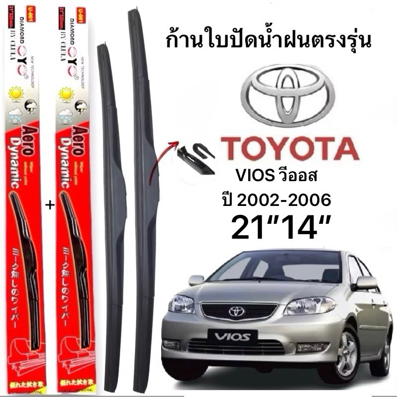 ก้านปัดน้ำฝนตรงรุ่น (1คู่ ก้านพร้อมยาง) สำหรับรถ TOYOTA VIOS วีออสปี 2002-2006 ใส่ได้ชัวร์ 100%