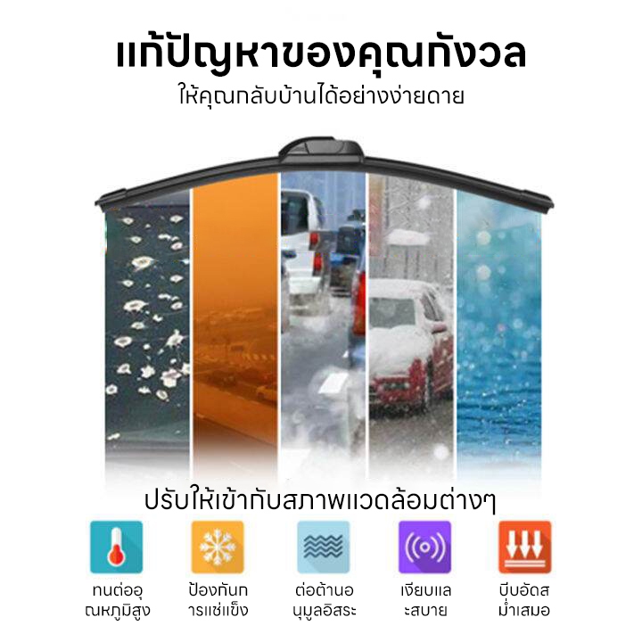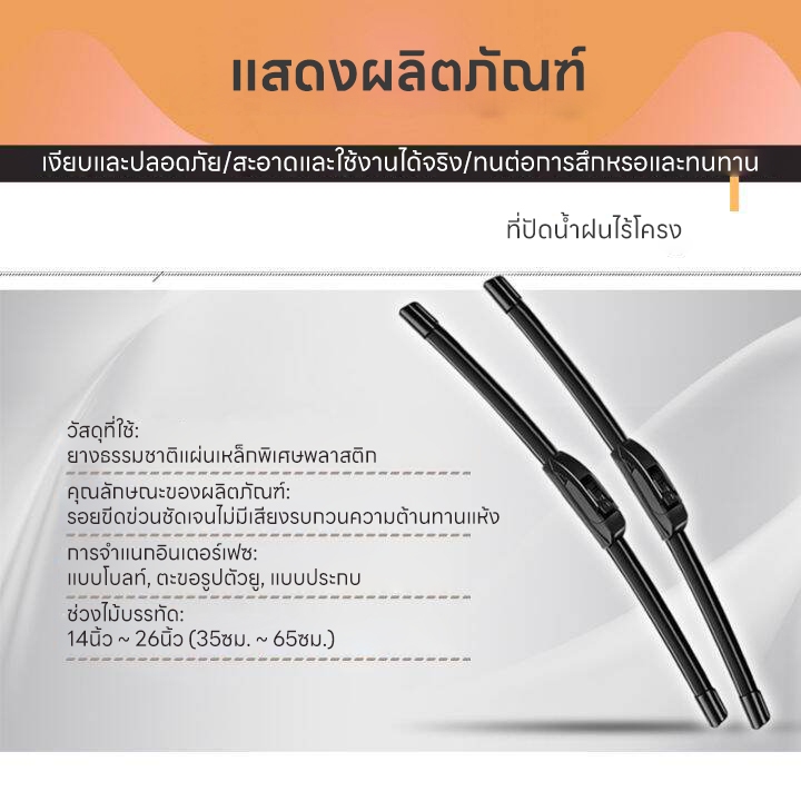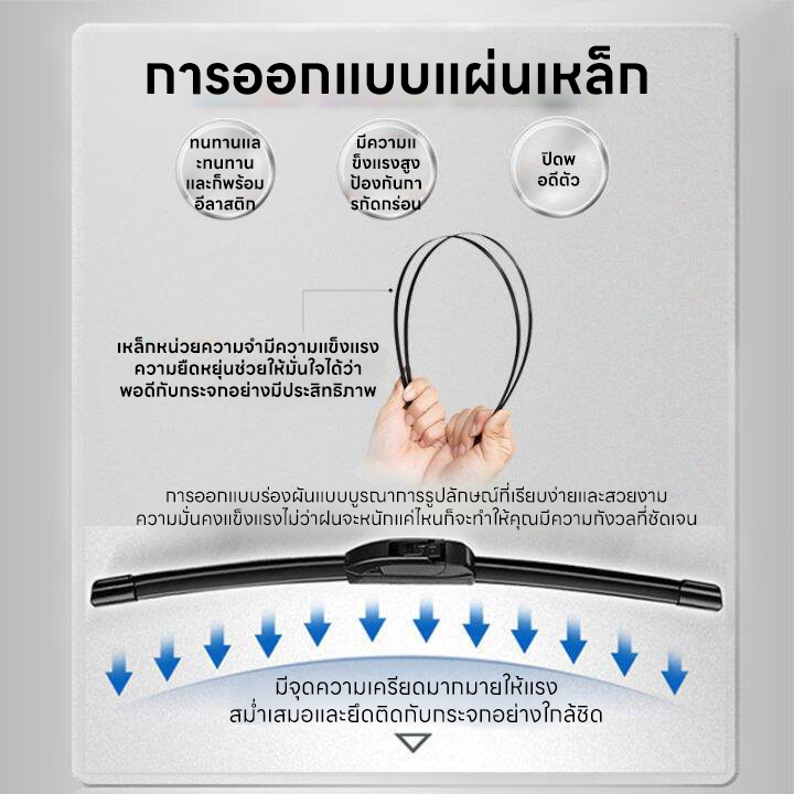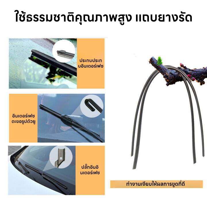 ราคาต่อชิ้น ใบปัดน้ำฝน ก้านพร้อมยางปัดน้ำฝน Fiber Blade แนบสนิทปัดน้ำฝนได้ดีเยี่ยม ใบปัดน้ำฝน U type