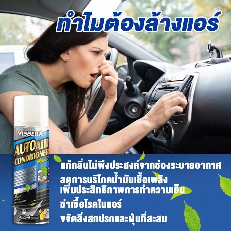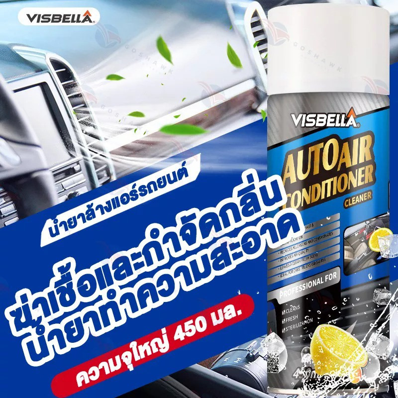 VISBELLA สเปรย์ล้างแอร์ โฟมสเปรย์ล้างแอร์รถยนต์ 450ml กำจัดกลิ่นและเพิ่มความหอมสดชื่นให้กับอากาศภายในรถ