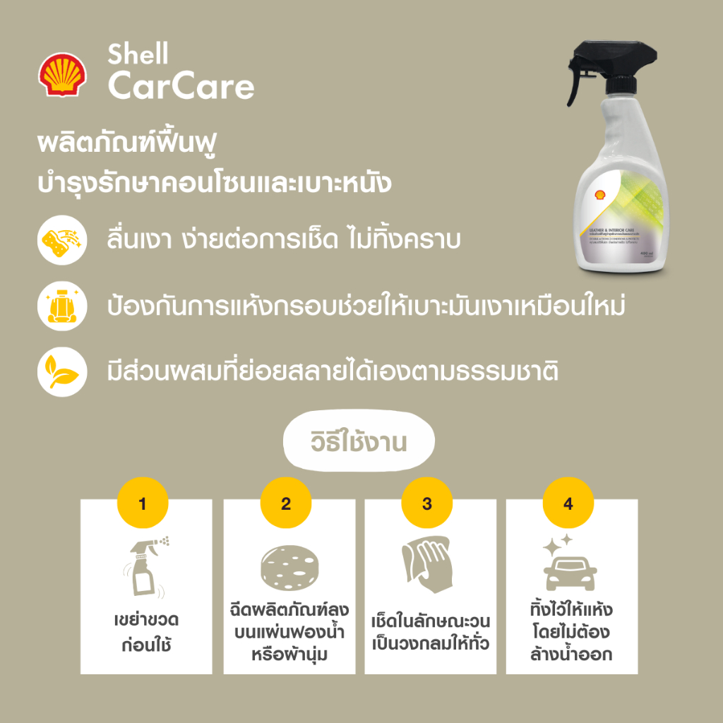 SHELL ผลิตภัณฑ์ฟื้นฟูบำรุงรักษาคอนโซนและเบาะหนัง Leather & Interior Care (400 มล.)