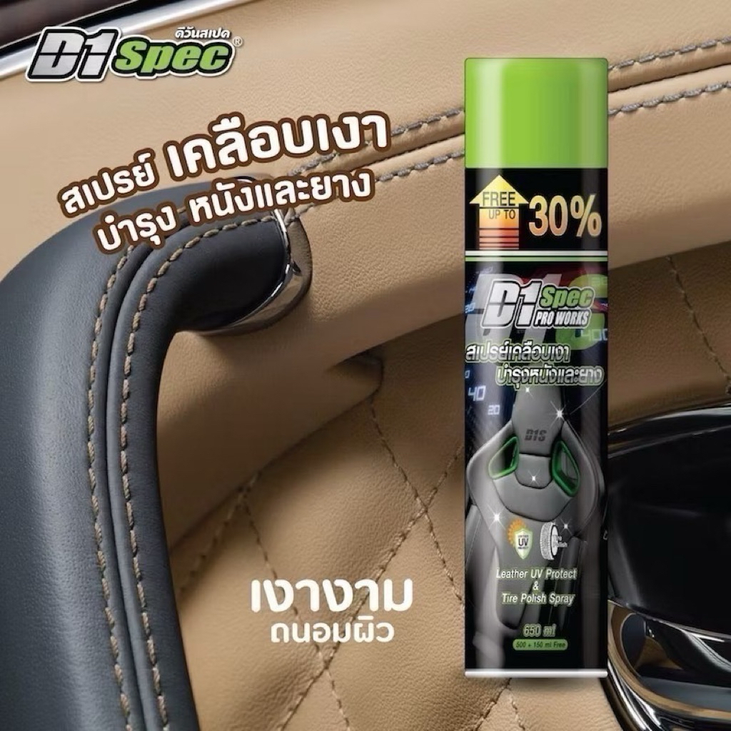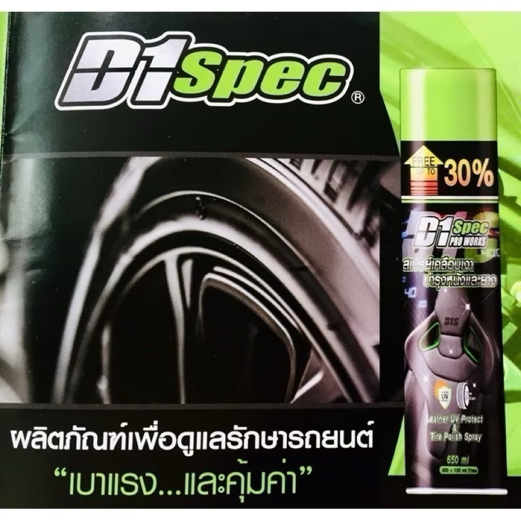 D1 Spec ดีวันสเปคสเปรย์เคลือบเงาหนังและยาง ชิ้นดำขนาด650mlฟื้นฟูสภาพผิวสีของหนัง ให้สีกลับมาเป็นดังเดิมจ้า(เคลือบหนังD1)