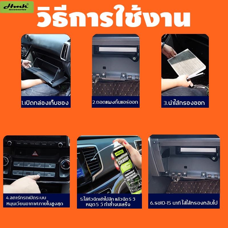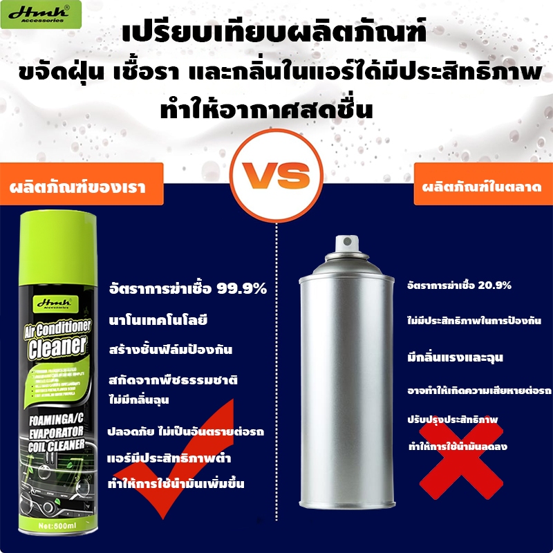 HMK โฟมล้างแอร์ 500ml ทำความสะอาดแอร์รถ ใช้งานง่าย ไม่ต้องถอดชิ้นส่วน โฟมล้างแอร์ น้ำยาล้างแอร์