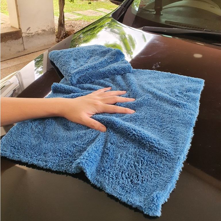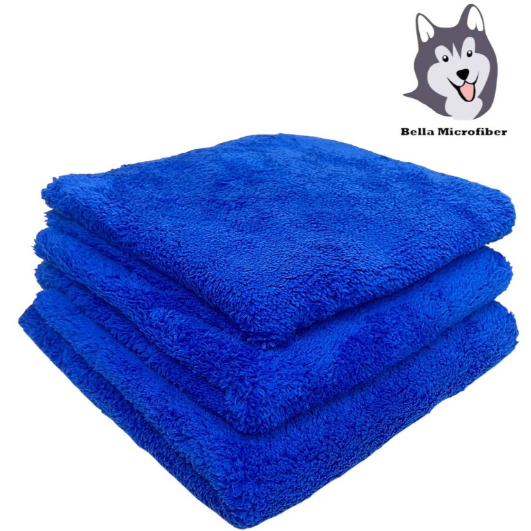 ผ้าเช็ดรถ ผ้าไมโครไฟเบอร์ไร้ขอบ ขนาด 40*40 ซม. สีน้ำเงิน ขนทั้สองด้าน 500 GSM(WP304)