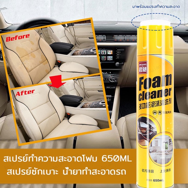 โฟมขจัดคราบ โฟมทำความสะอาด น้ำยาซักเบาะ650ml สเปรย์โฟมทำความสะอาดเบาะ สเปรย์ทำความสะอาด ซักเบาะ น้ำยาทำความสะอาดเบาะหนัง