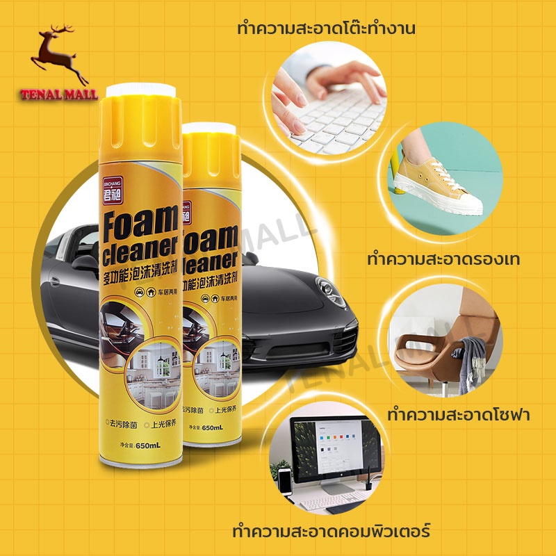 สเปรย์โฟมทำความสะอาดเบาะรถ Foam Cleaner 650ml โฟมขจัดคราบทำความสะอาดภายในรถยนต์
