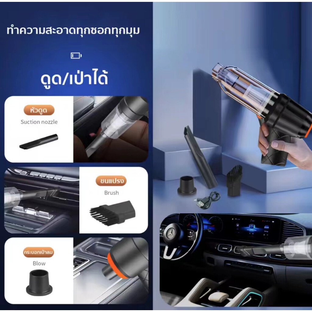 เครื่องดูดฝุ่นในรถ ไร้สาย 65000Pa car vacuum cleaner เครื่องดูดฝุ่นขนาดเล็ก ที่ดูดฝุ่นในรถยนต์ ภายในบ้าน เตียง 2000mAh