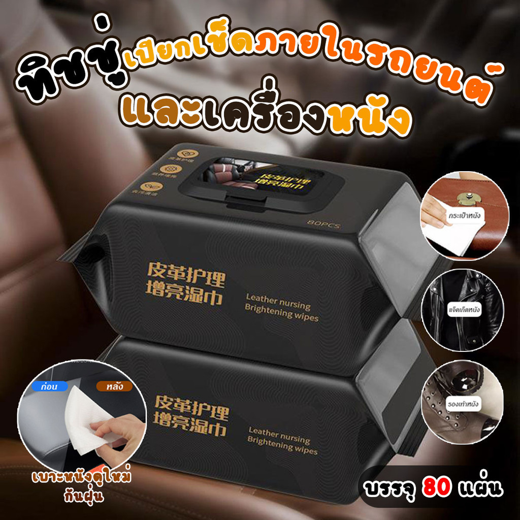 แผ่นเช็ดทำความสะอาดภายในรถยนต์ ทิชชู่เปียกเช็ดทำความสะอาดเครื่องหนัง 80 แผ่น/แพ็ค พร้อมส่งจากปทุม