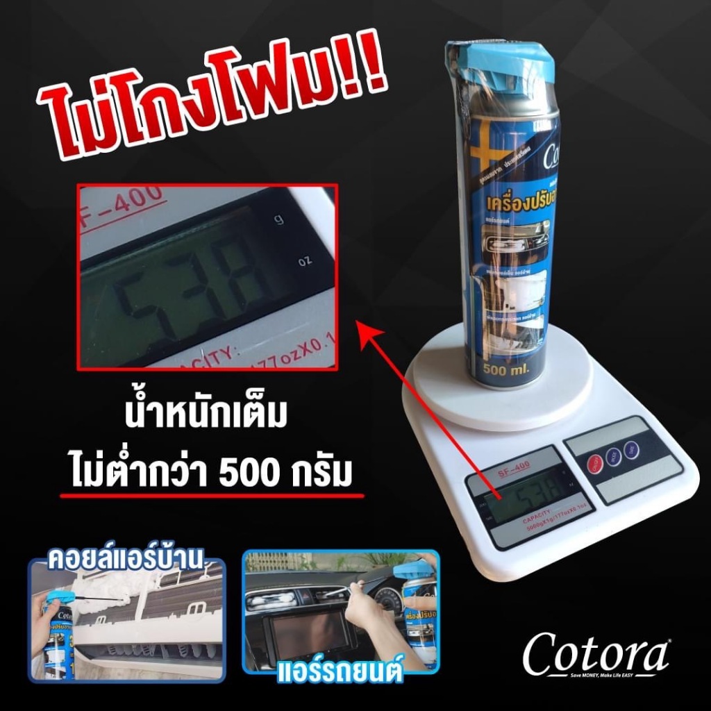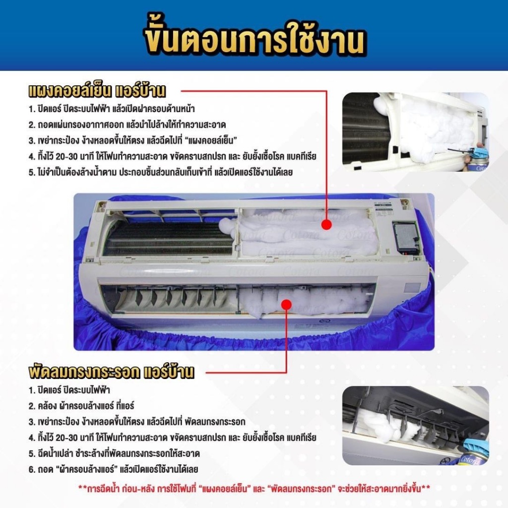 ล้างแอร์รถยนต์แอร์บ้าน cotoraสเปรย์โฟมขนาด 500 ml. ส่งพร้อมท่อสายยางสำหรับรถยนต์