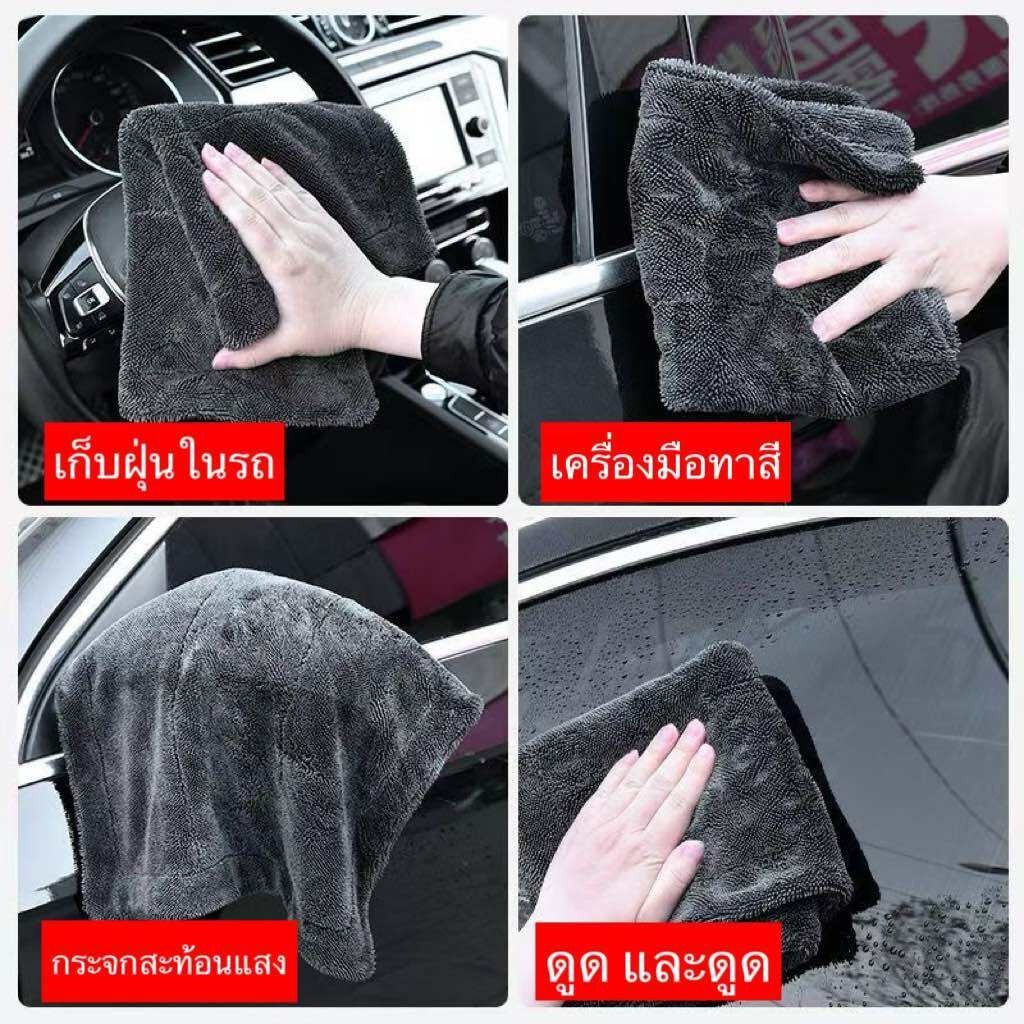 1300GMS ผ้าไมโครไฟเบอร์แบบไร้ขอบหนา ผ้าขนหนูล้างรถ 60×90 ซม. ผ้าเช็ดรถอเนกประสงค์ ผ้าซับน้ำ ซับน้ำได้ทั้งคัน