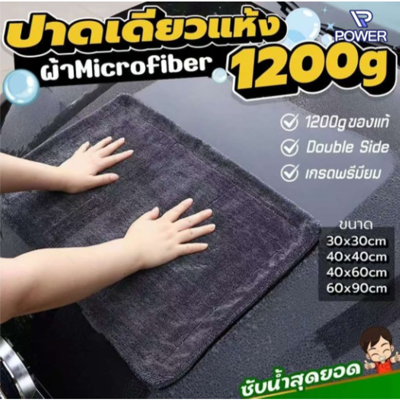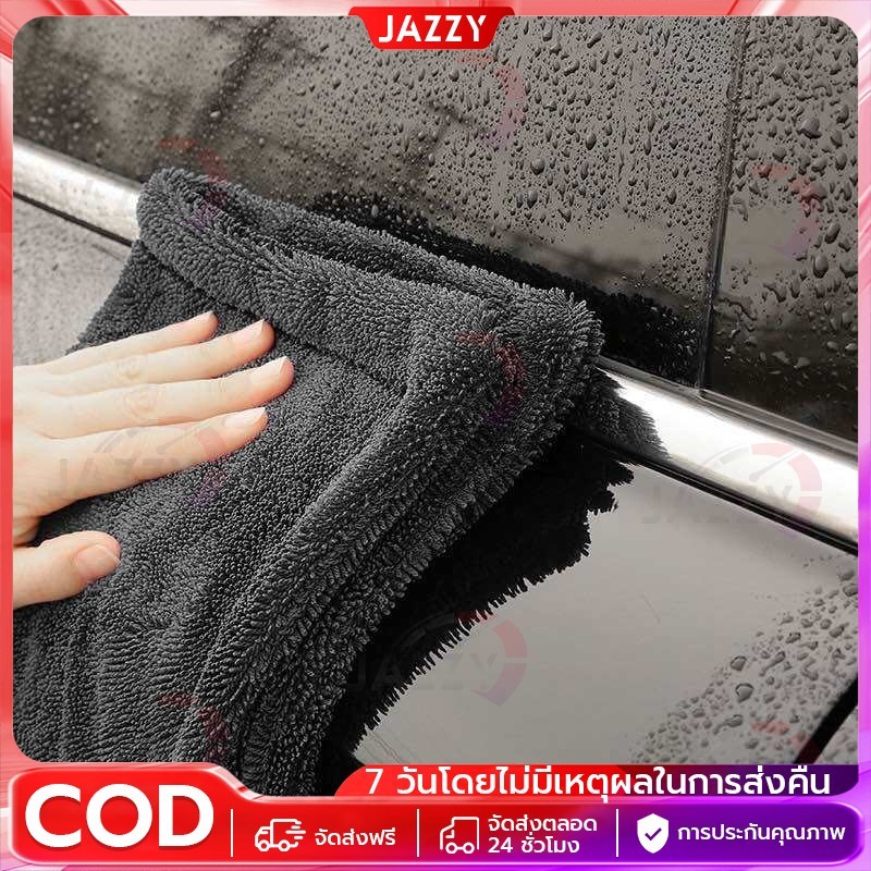 【Jazzy】60*90Cm ผ้าเช็ดรถไมโครไฟเบอร์ ผ้าเช็ดตัวสองด้าน 1200GSM อุปกรณ์ทำความสะอาดรถยนต์ 40*60Cm