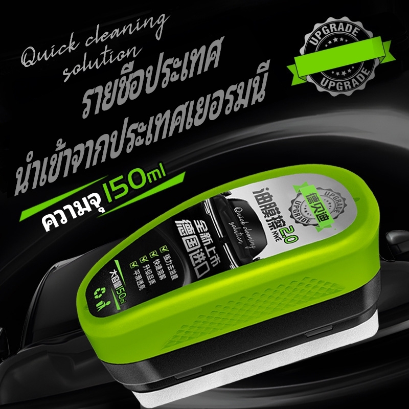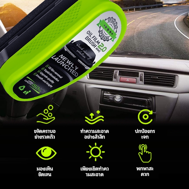 150mlน้ํายาล้างฟิล์มน้ํามันกระจกรถยนต์เวอร์ชั่นอัพเกรดสีเขียวใหม่ปรับปรุงความชัดเจน แปรงทําความสะอาด