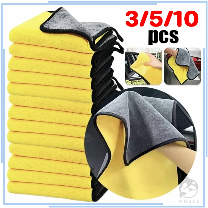 3-10ชิ้นข้นไมโครไฟเบอร์ผ้าขนหนูทําความสะอาดรถ-นุ่มแห้งเร็วหน้าต่างกระจกเช็ดเศษผ้า-บ้านสองด้านผ้าสะอาด